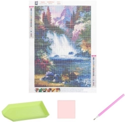 Motív vodopádu s rozmerom 30 × 40 cm (plocha obrázka 25 × 35 cm) vynikne trblietavým efektom a po dokončení sa skvele hodí na zarámovanie alebo zavesenie bez rámu. Sada je kompletná – všetko máte ihneď po ruke.