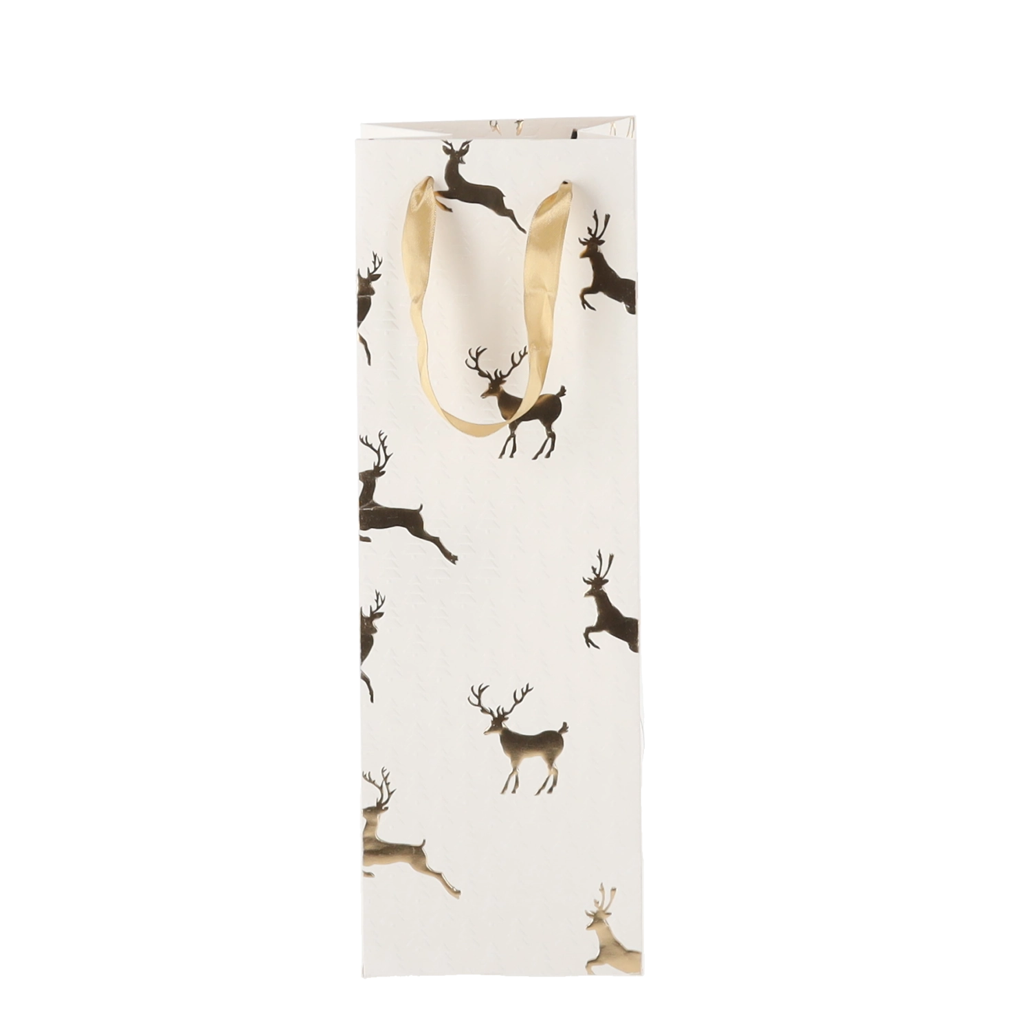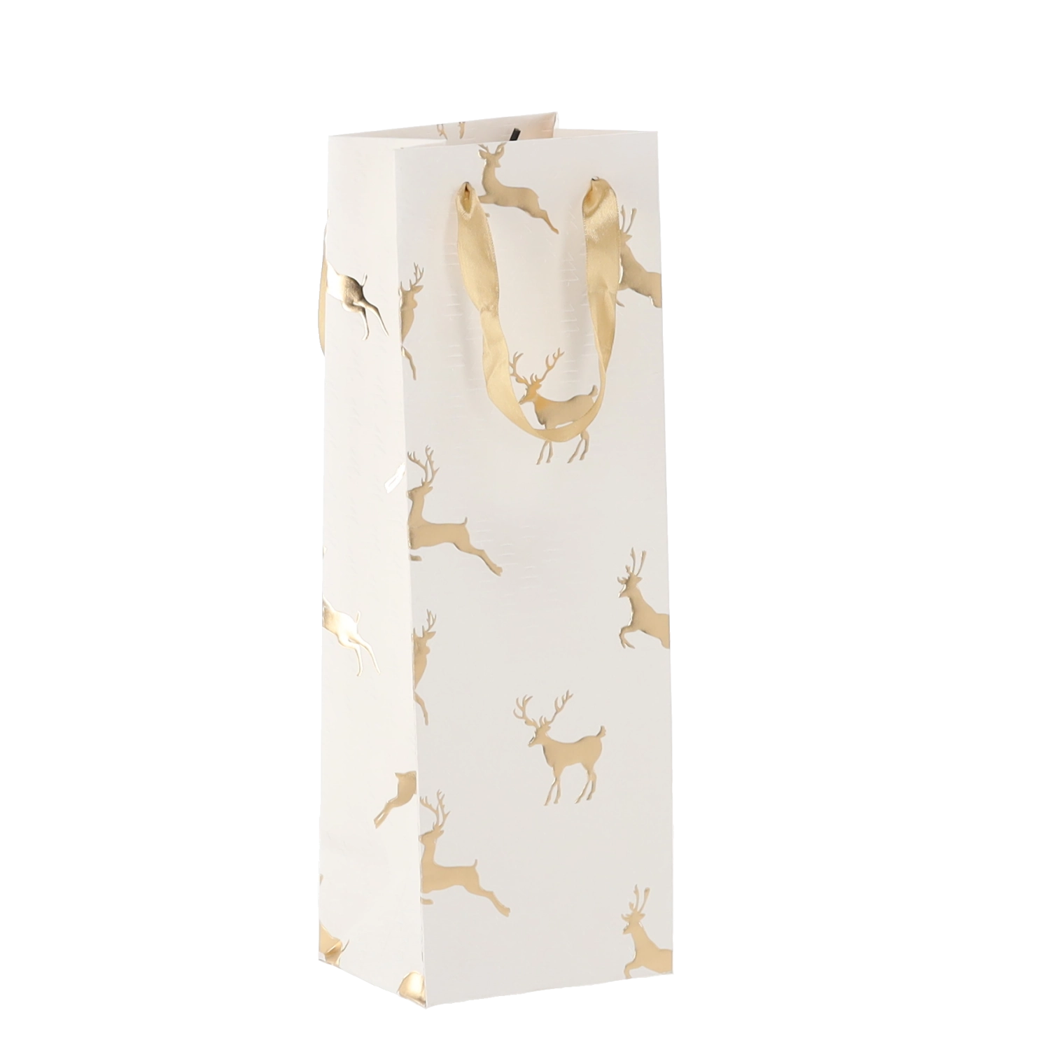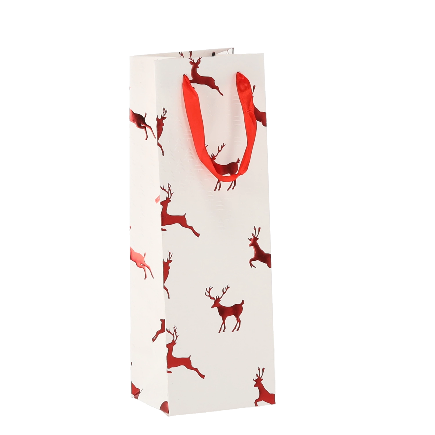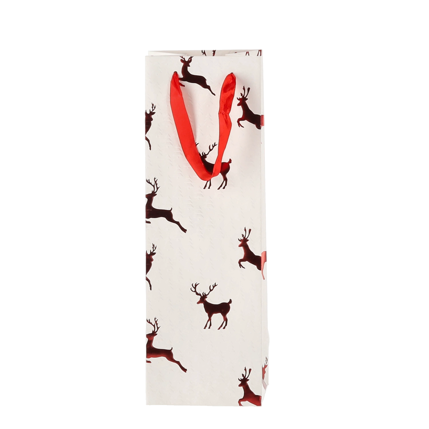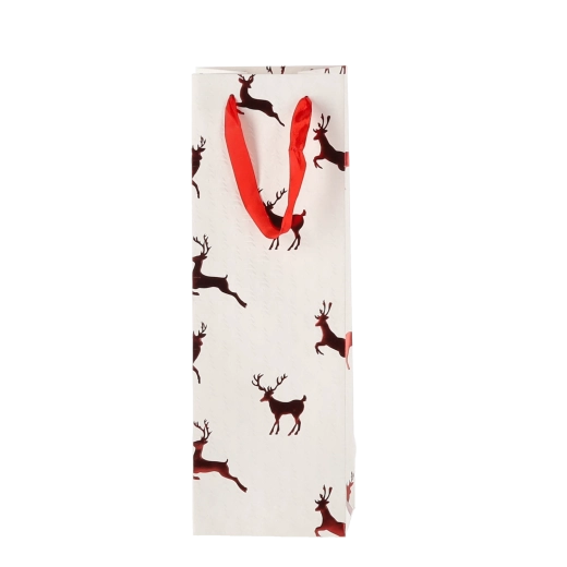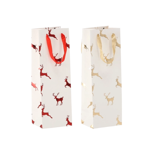 Táto vianočná darčeková taška na víno dodá vašim darčekom šmrnc. Kvalitný papier s gramážou 210 g/m² zaisťuje vysokú pevnosť a odolnosť, zatiaľ čo saténové rukoväte uľahčujú pohodlné nosenie a podčiarkujú sviatočný dizajn s motívmi sobov.