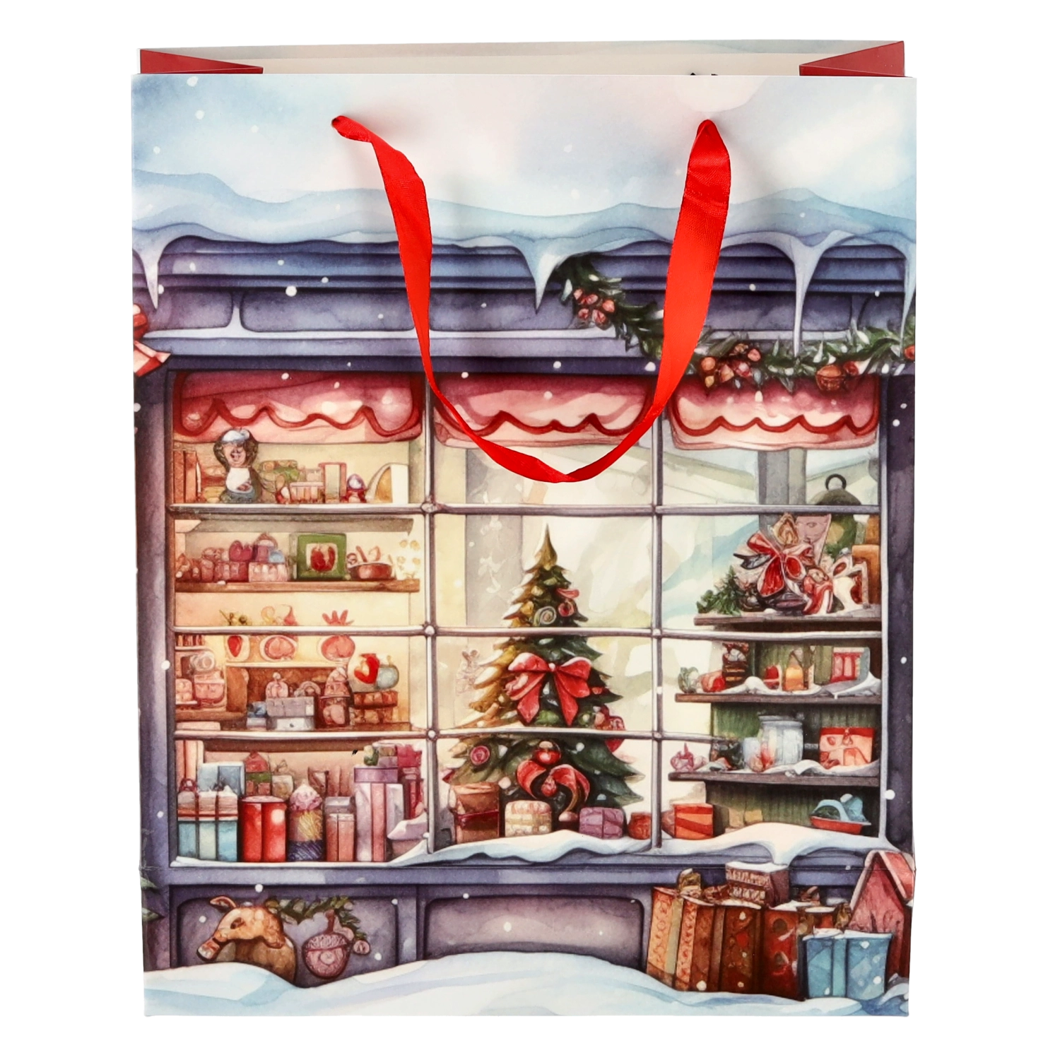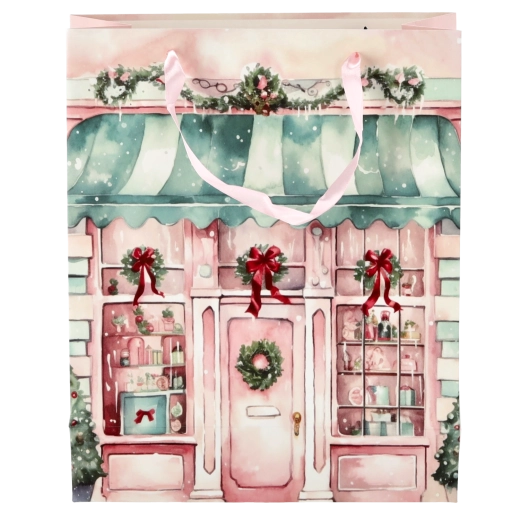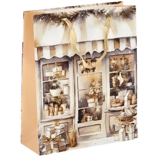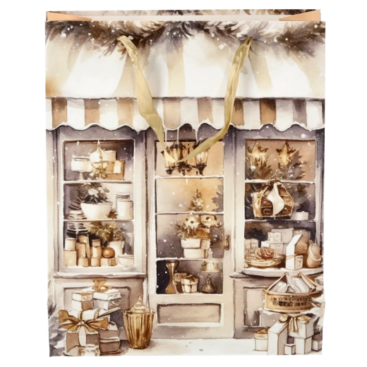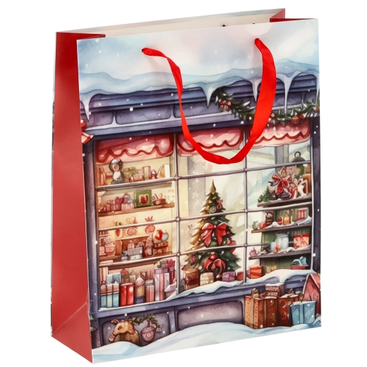 Dodajte svojim darčekom sviatočný lesk. Táto vianočná taška s čarovným motívom domčeka má lesklý laminovaný povrch, ktorý zvýrazní farby a dodá baleniu luxusný vzhľad. Vďaka pevnej papierovej konštrukcii si drží tvar a chráni obsah pred pokrčením.