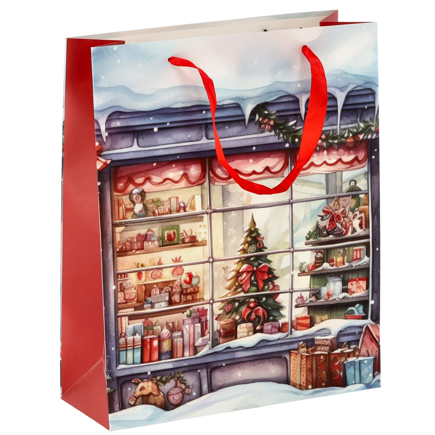 Rozmery 26 × 32 × 10 cm z nej robia skvelú voľbu na knihy, väčšie kalendáre aj menšie darčekové sady. Pevné rúčky zabezpečujú pohodlné prenášanie a univerzálny sviatočný dizajn sa hodí na celú zimu, nielen na Štedrý deň.