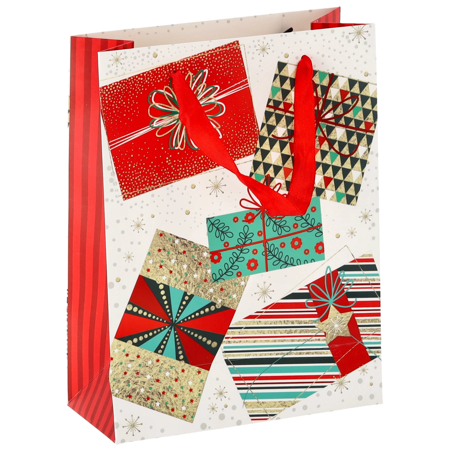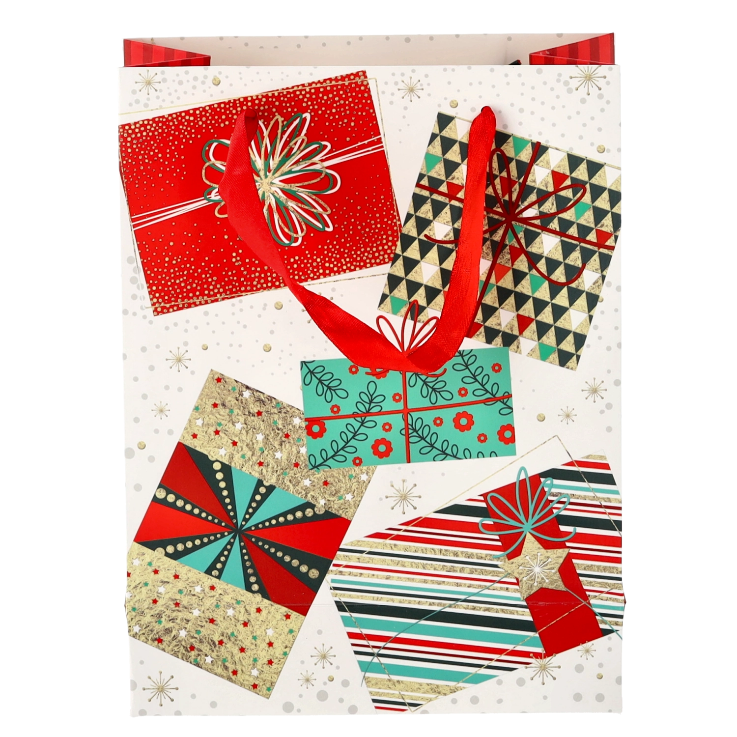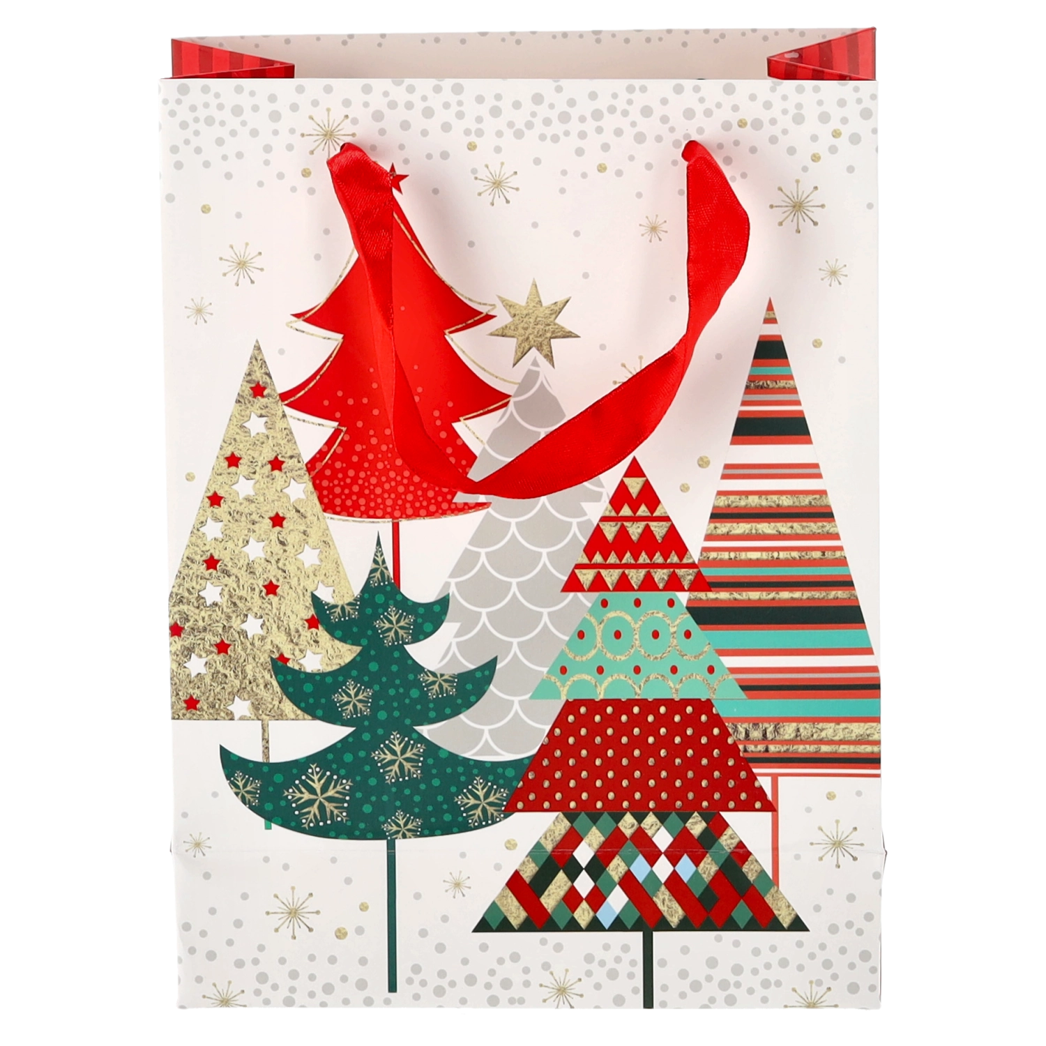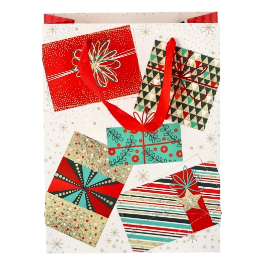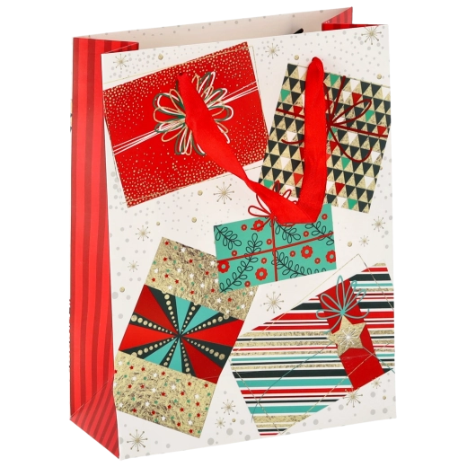 Univerzálny formát 18 × 24 × 8 cm je perfektný pre menšie a stredne veľké darčeky – od kníh a kozmetiky po módne doplnky. Motívy Vianoc v červených, zelených a zlatých tónoch vytvárajú slávnostnú atmosféru, ktorá poteší už pri odovzdaní.