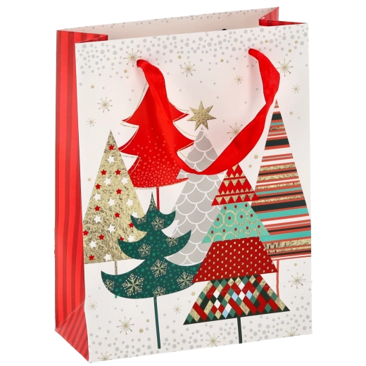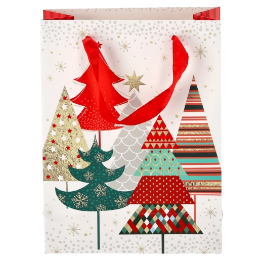 Táto vianočná taška z kvalitného papiera zabezpečuje spoľahlivú nosnosť a pohodlné prenášanie vďaka pevným stužkovým uškám. Lesklý povrch s detailnou grafikou podčiarkuje prémiový vzhľad a zvýrazní štýl každého darčeka.