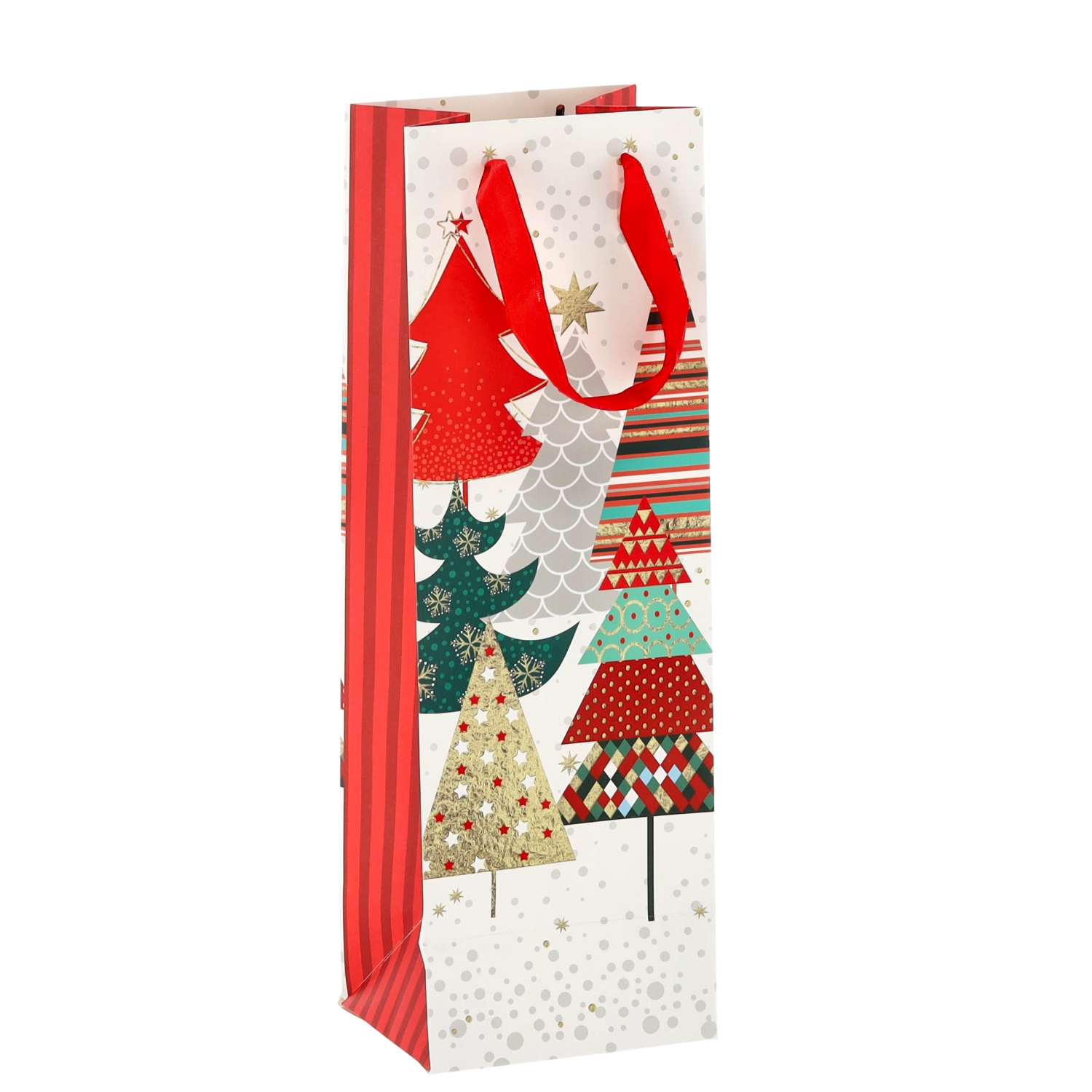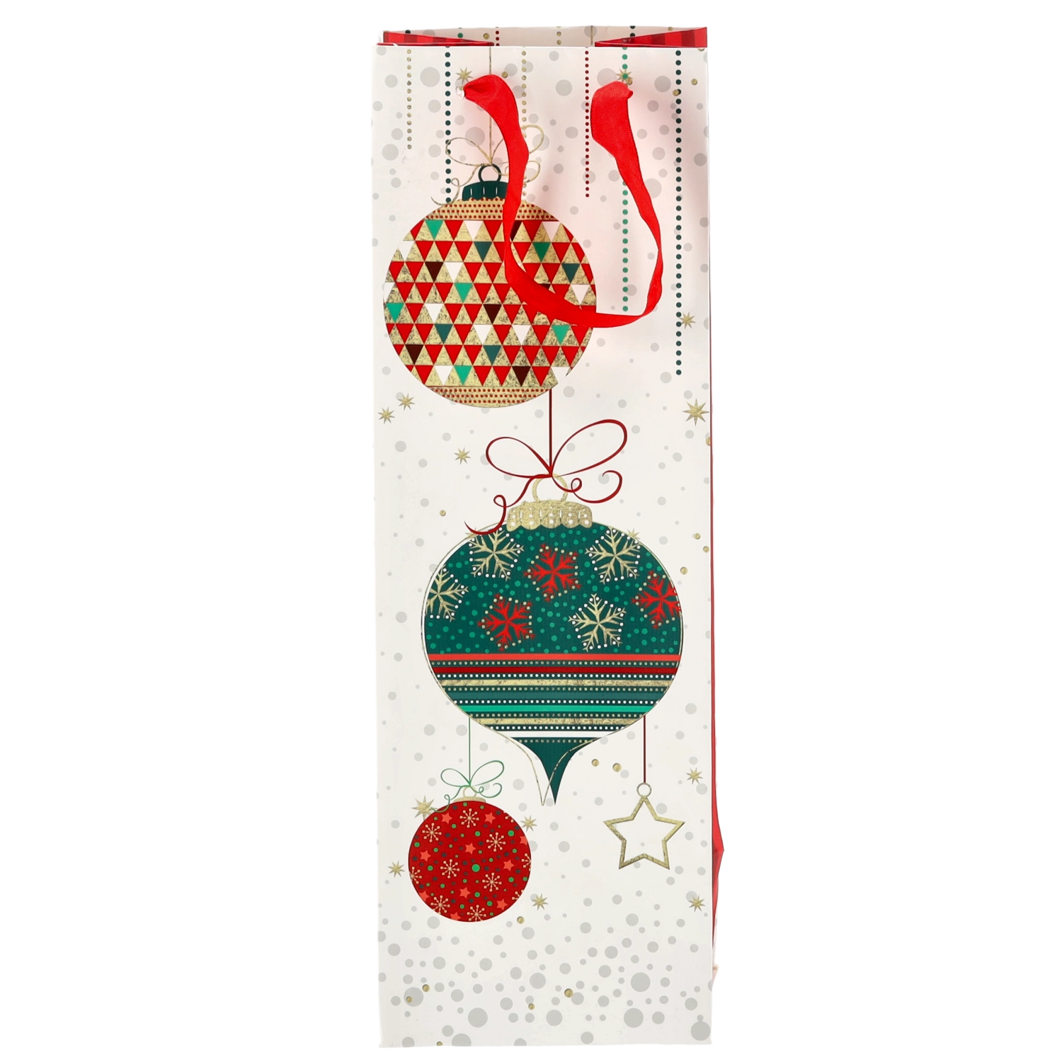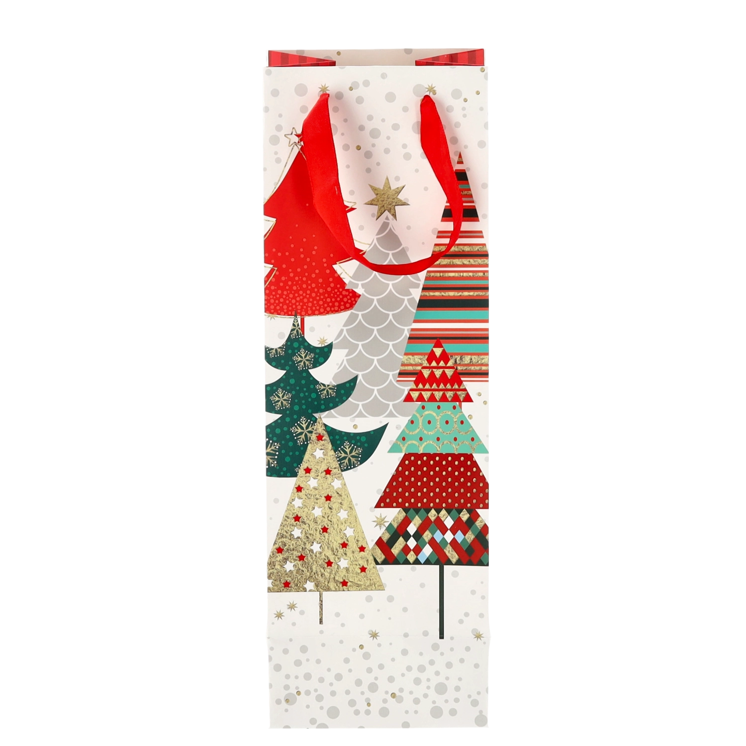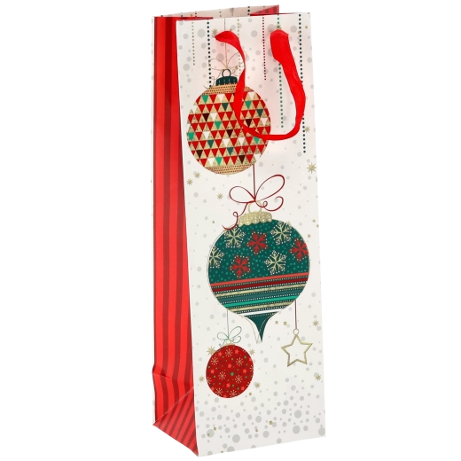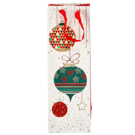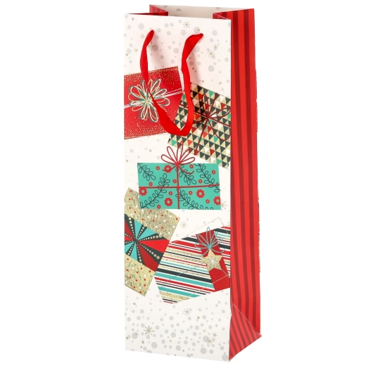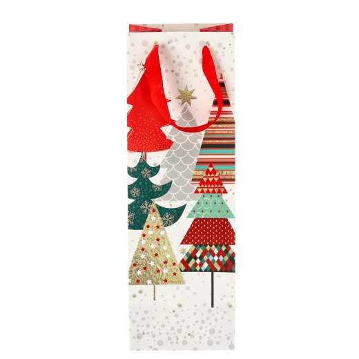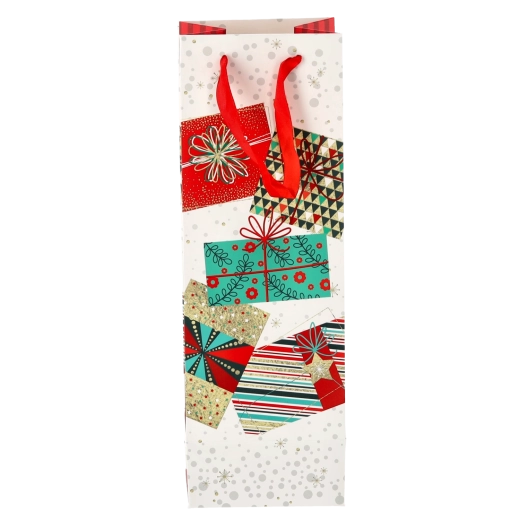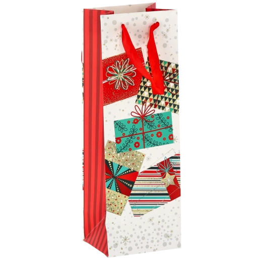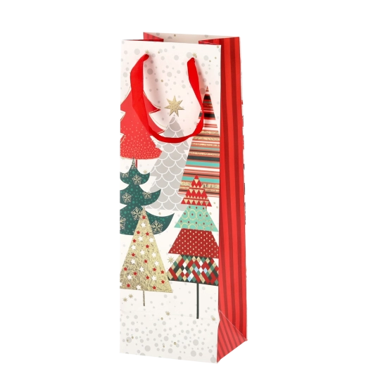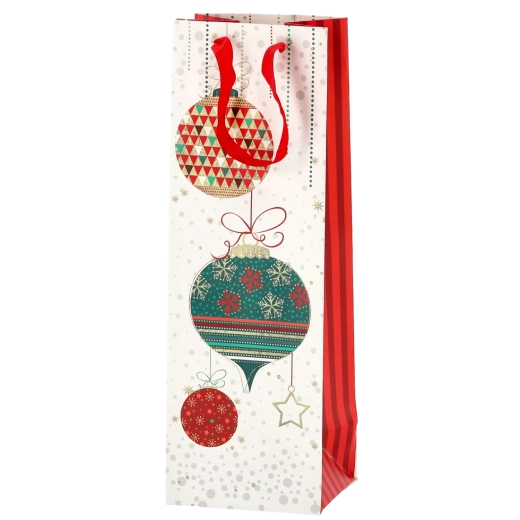 Vytvorte z každej fľaše vína reprezentatívny darček. Táto vianočná darčeková taška ponúka čistý biely základ s výraznými sviatočnými motívmi, ktoré vášmu darčeku dodajú prémiový vzhľad. Pevná konštrukcia z kvalitného papiera chráni obsah pri prenášaní.