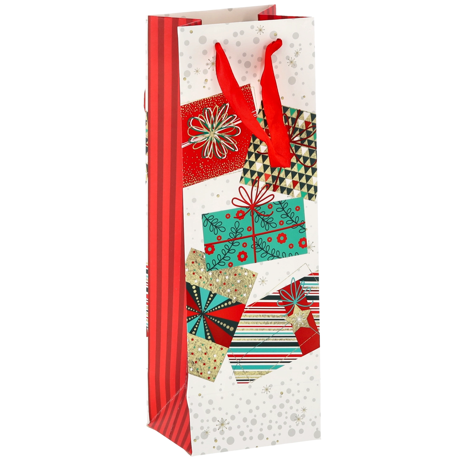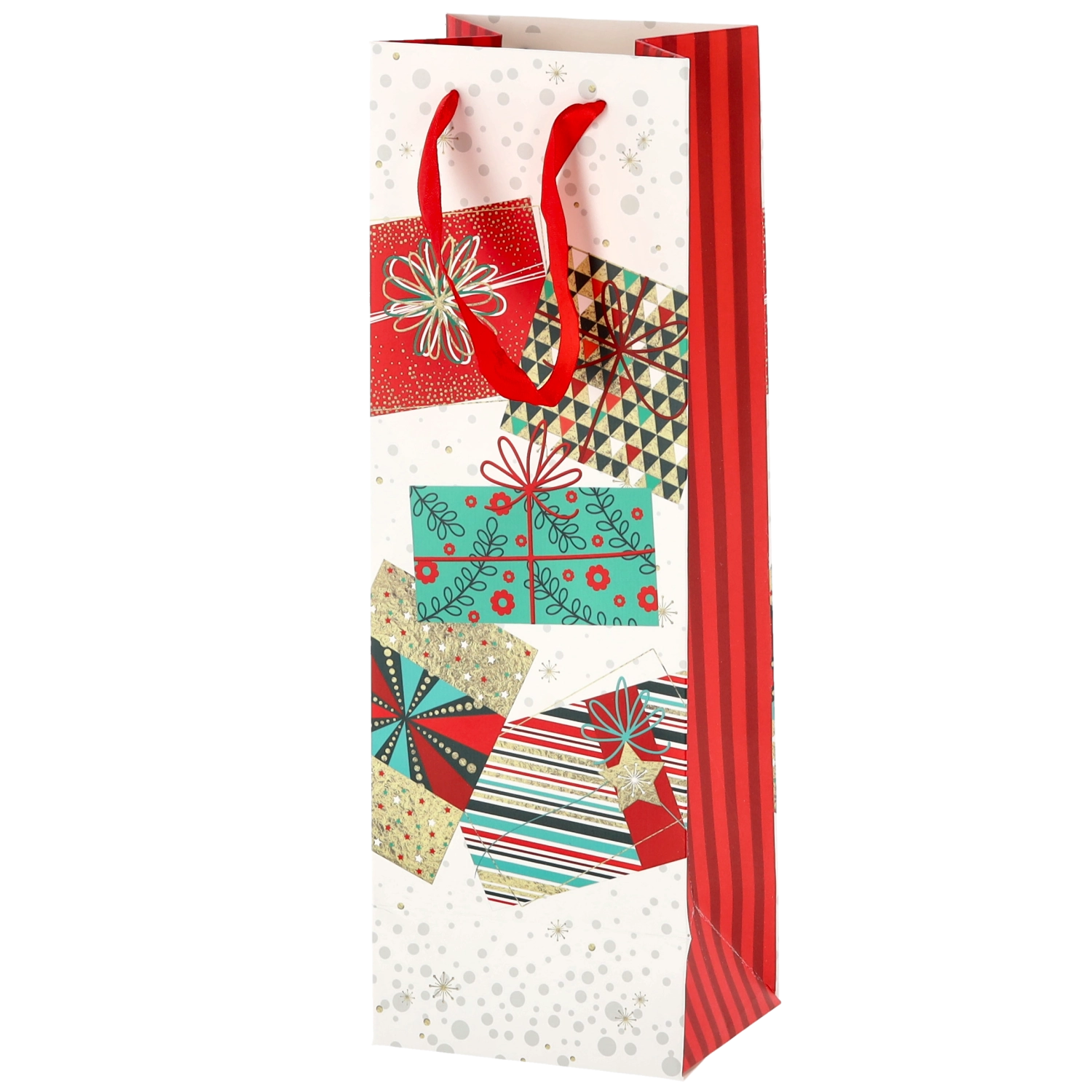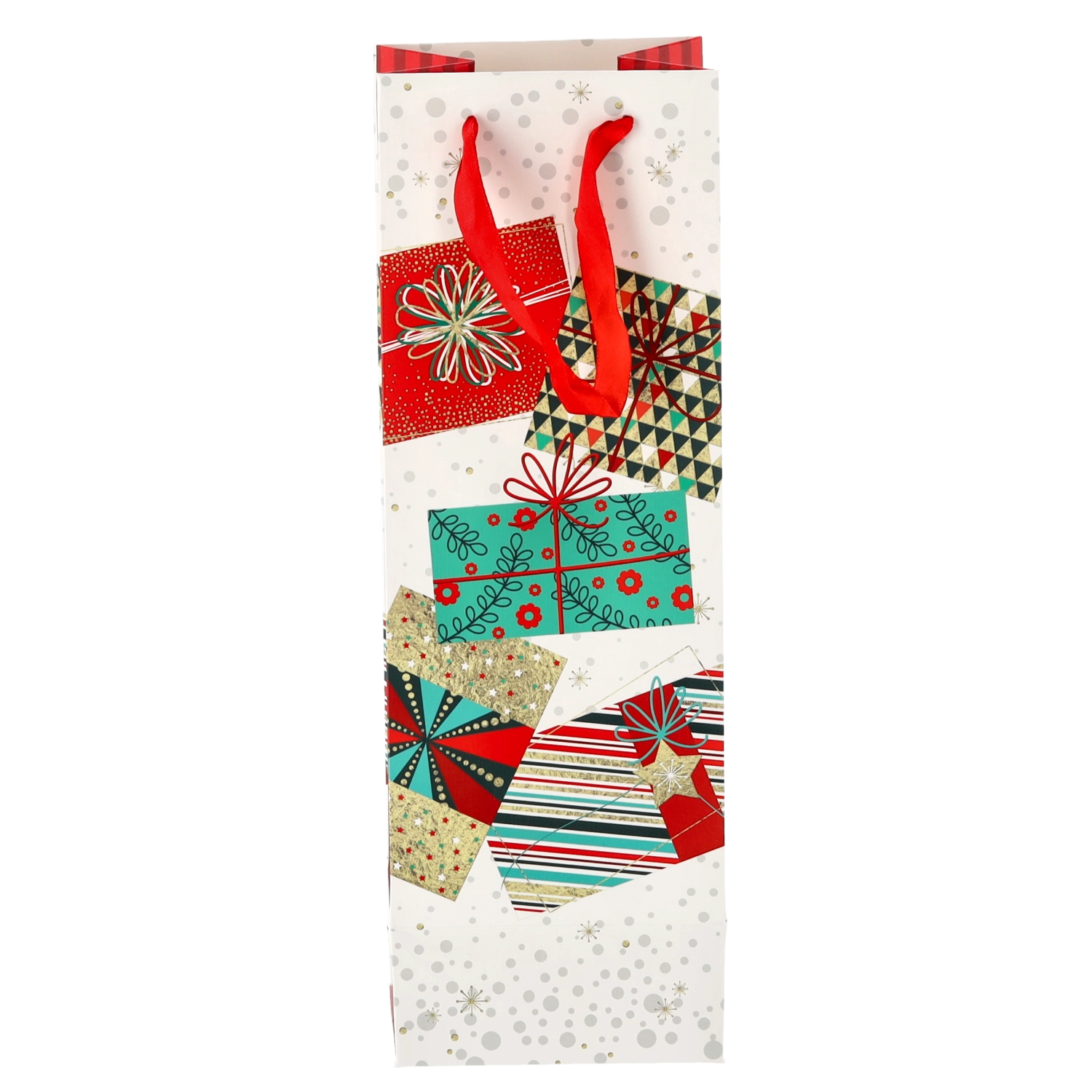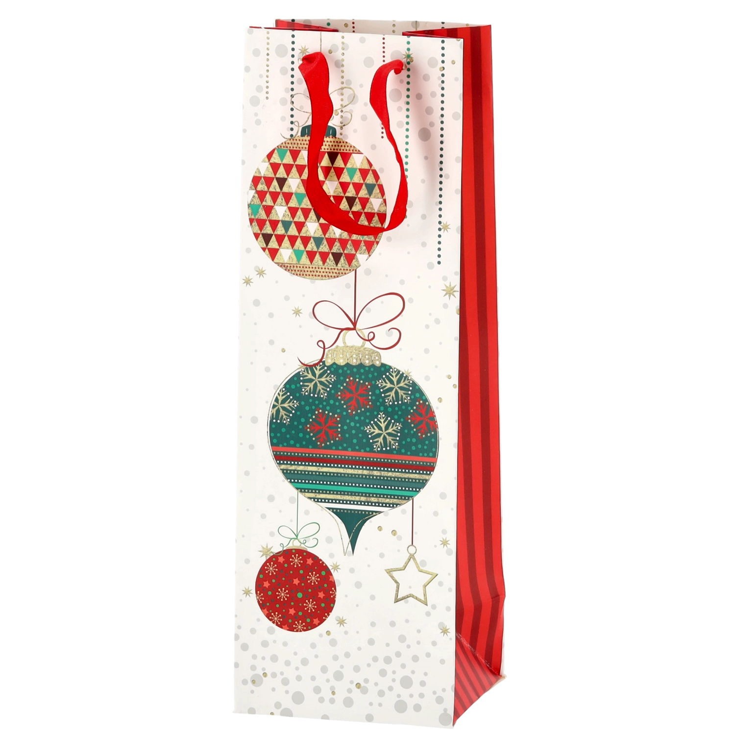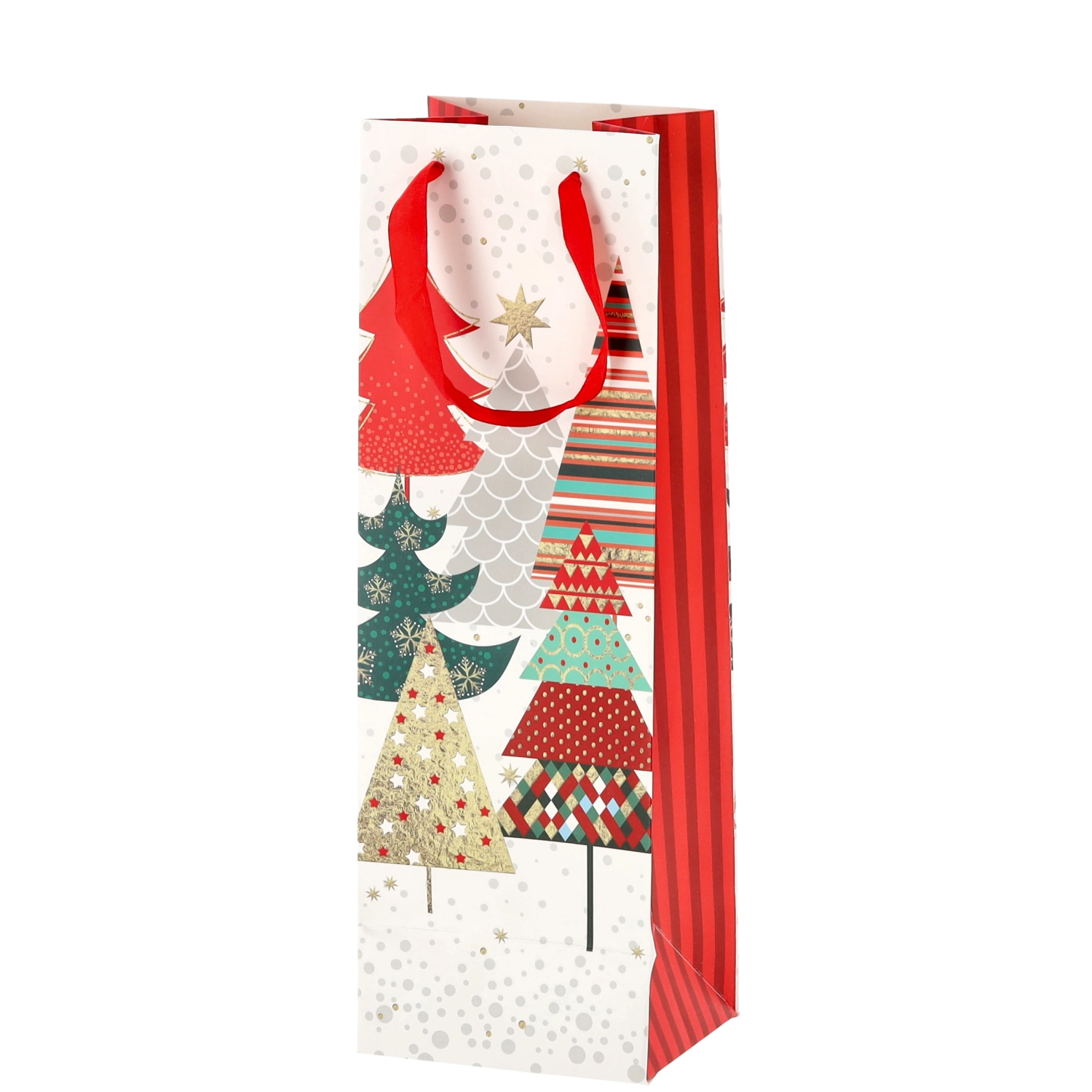 Vytvorte z každej fľaše vína reprezentatívny darček. Táto vianočná darčeková taška ponúka čistý biely základ s výraznými sviatočnými motívmi, ktoré vášmu darčeku dodajú prémiový vzhľad. Pevná konštrukcia z kvalitného papiera chráni obsah pri prenášaní.