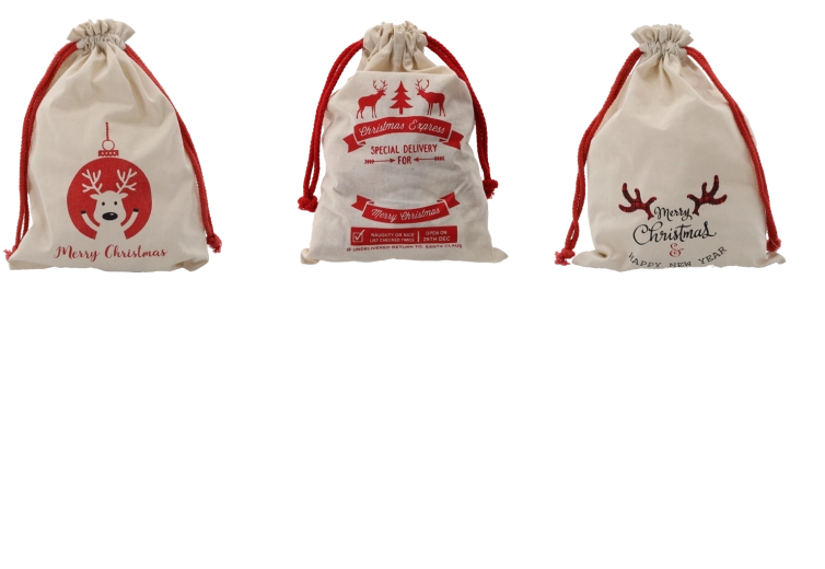 Dajte svojim vianočným darčekom originálny šmrnc s bavlnenými vreckami, ktoré skvele ladia so sviatočnou atmosférou. Prírodný materiál, kvalitné spracovanie a dekoratívna potlač vytvárajú estetické a udržateľné balenie, ktoré môžete používať opakovane.