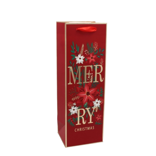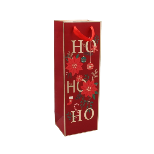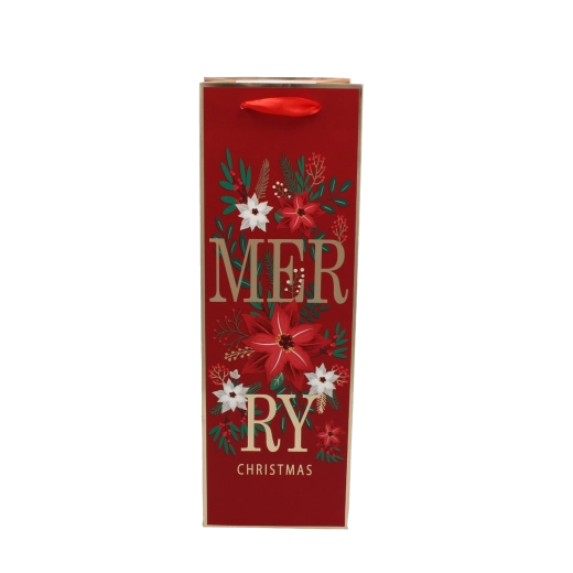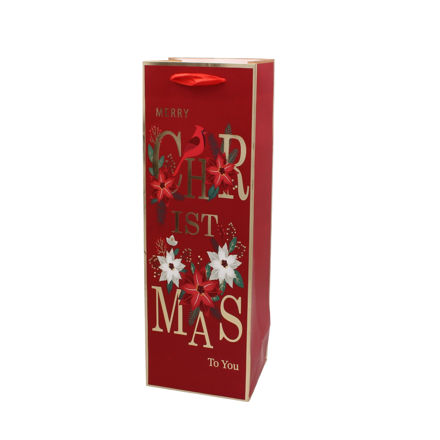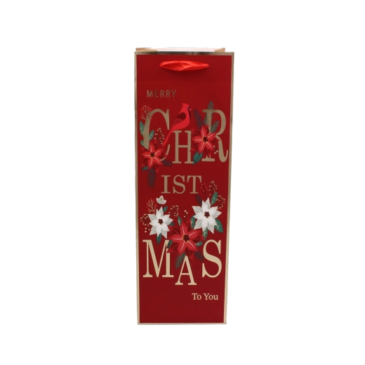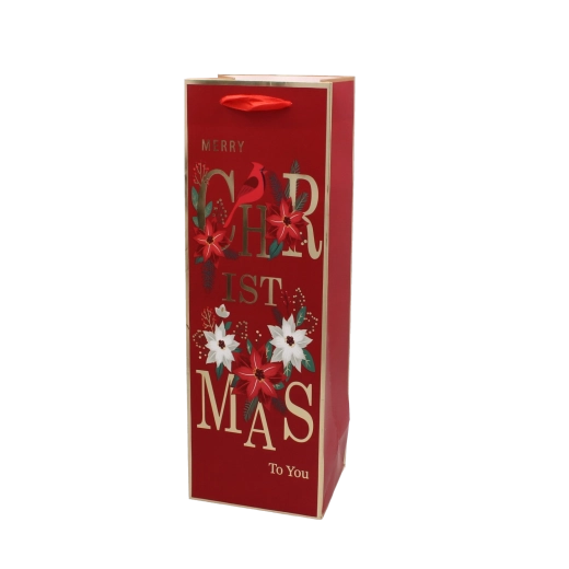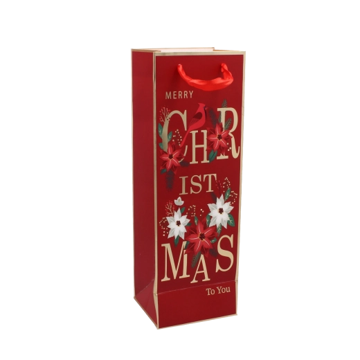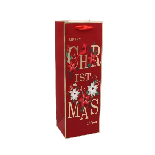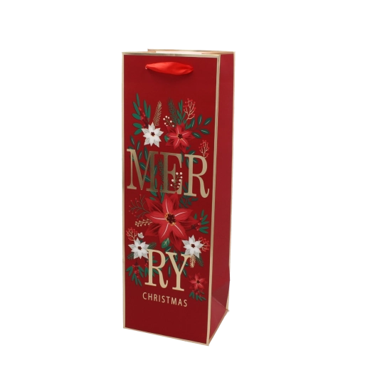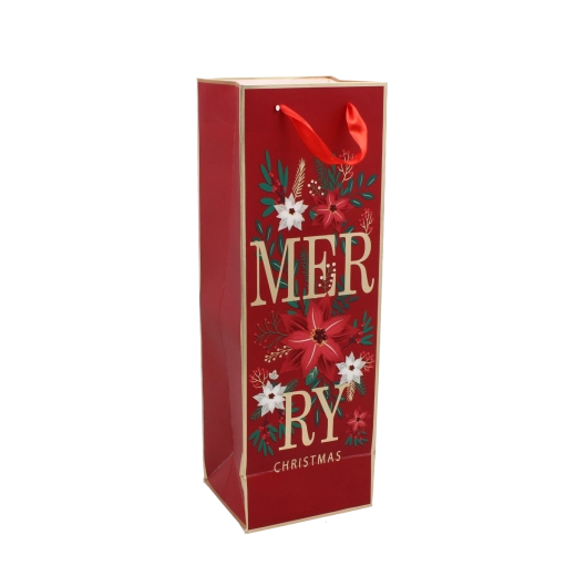 Darčekové tašky na víno Christmas to You potešia elegantným vzhľadom a pevnou konštrukciou. Sviatočné červené motívy s kvetmi, zlatými nápismi a decentnými detailmi podčiarknu atmosféru Vianoc. Rozmery 36 × 12 × 10 cm sú ideálne pre väčšinu fliaš vína, šumivých vín aj ďalších úzkych darčekov.