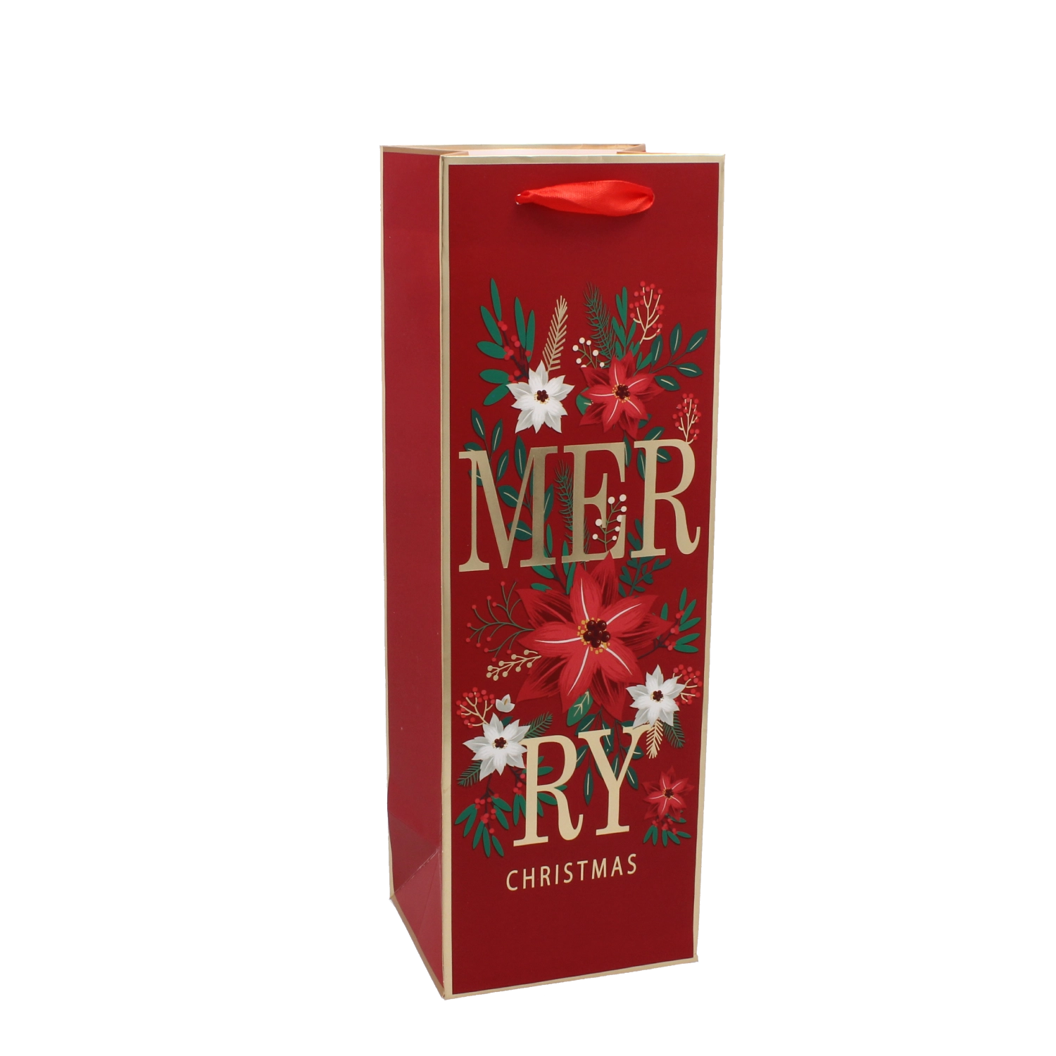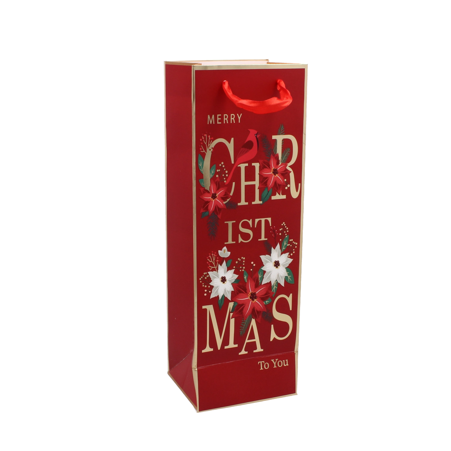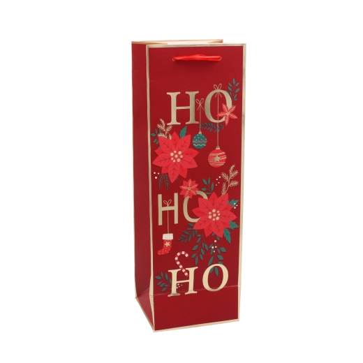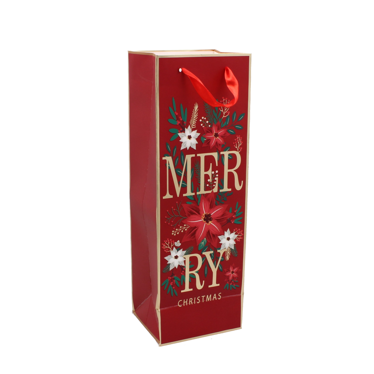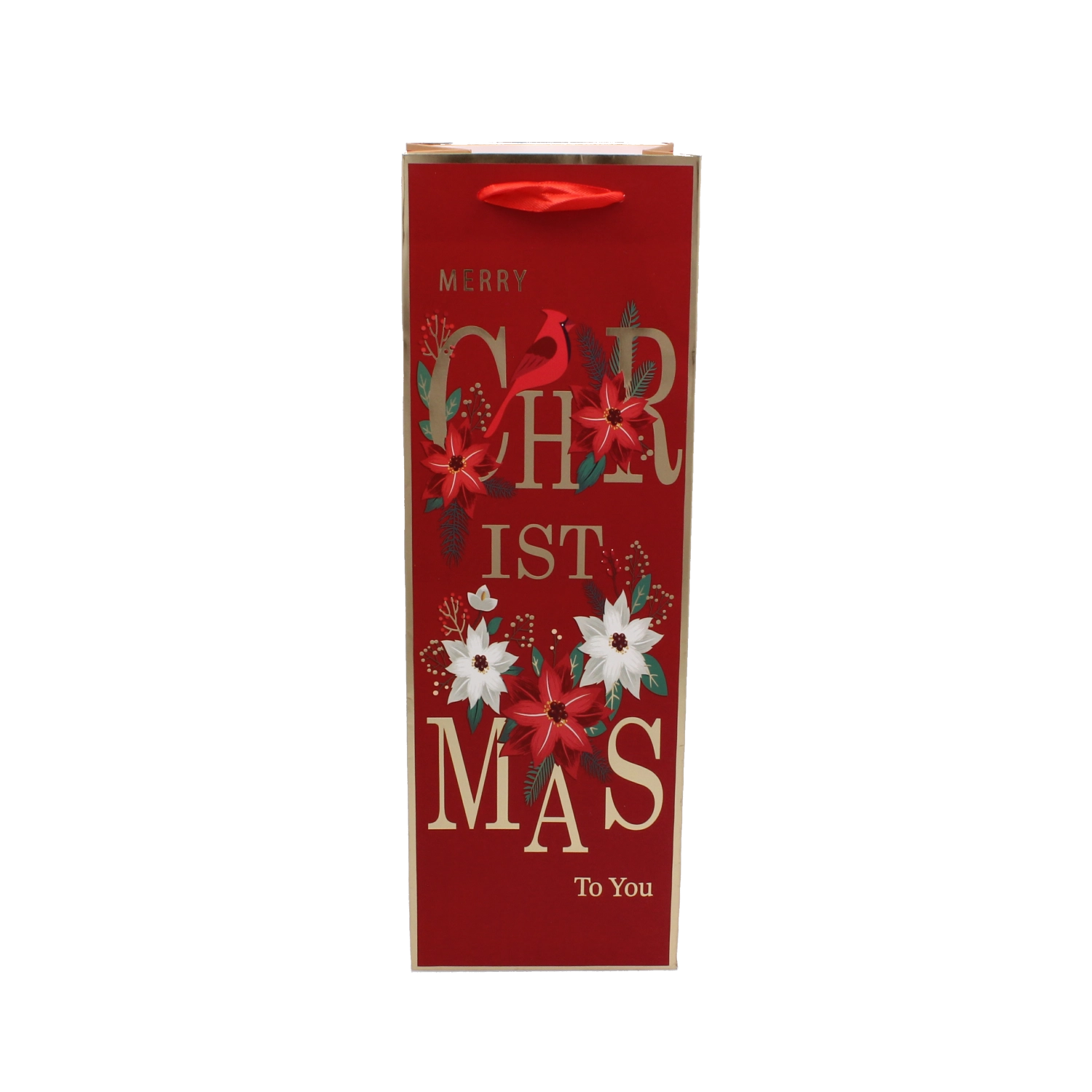 Darčekové tašky na víno Christmas to You potešia elegantným vzhľadom a pevnou konštrukciou. Sviatočné červené motívy s kvetmi, zlatými nápismi a decentnými detailmi podčiarknu atmosféru Vianoc. Rozmery 36 × 12 × 10 cm sú ideálne pre väčšinu fliaš vína, šumivých vín aj ďalších úzkych darčekov.