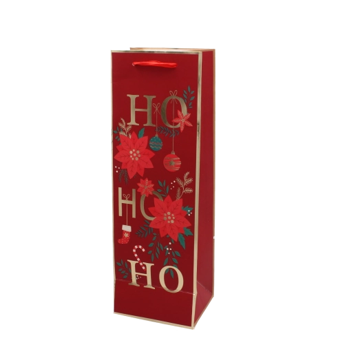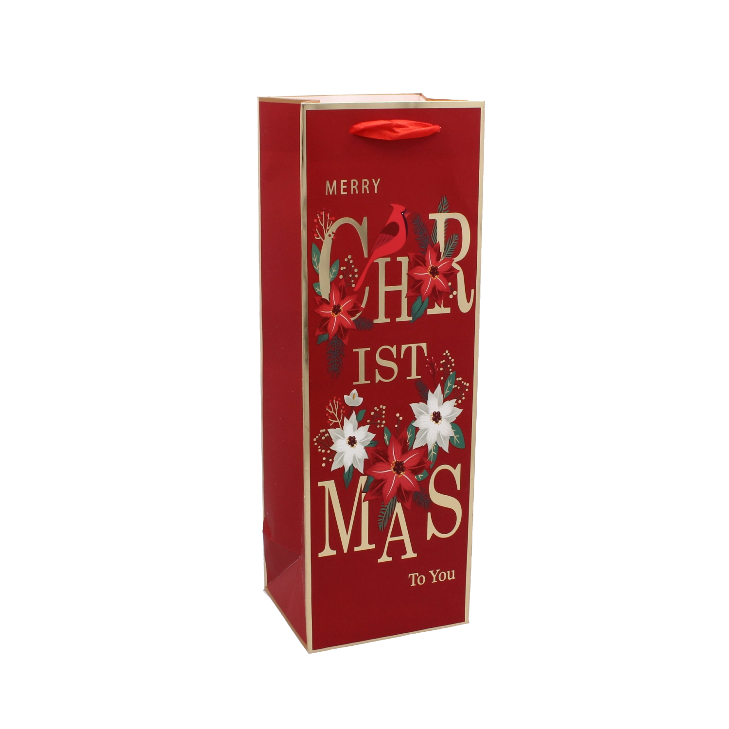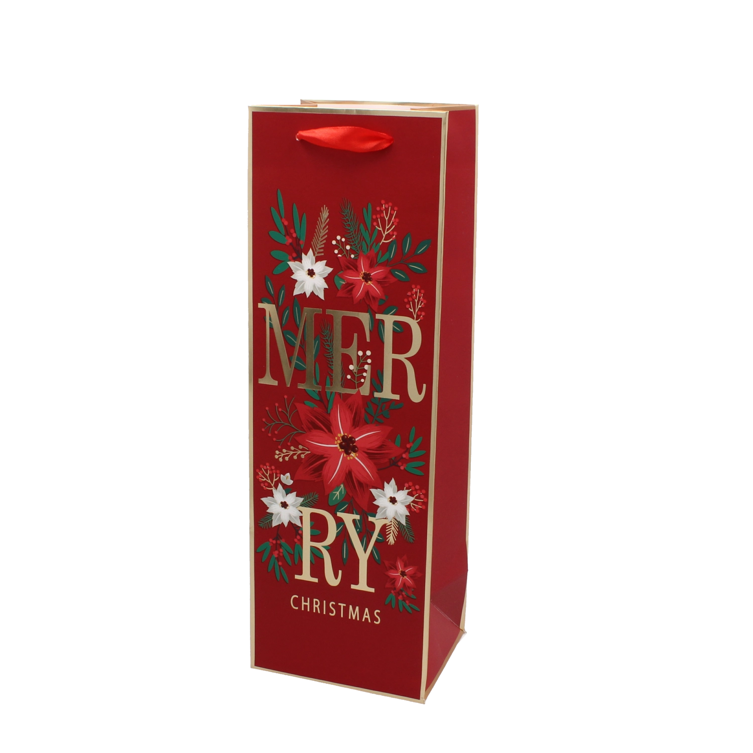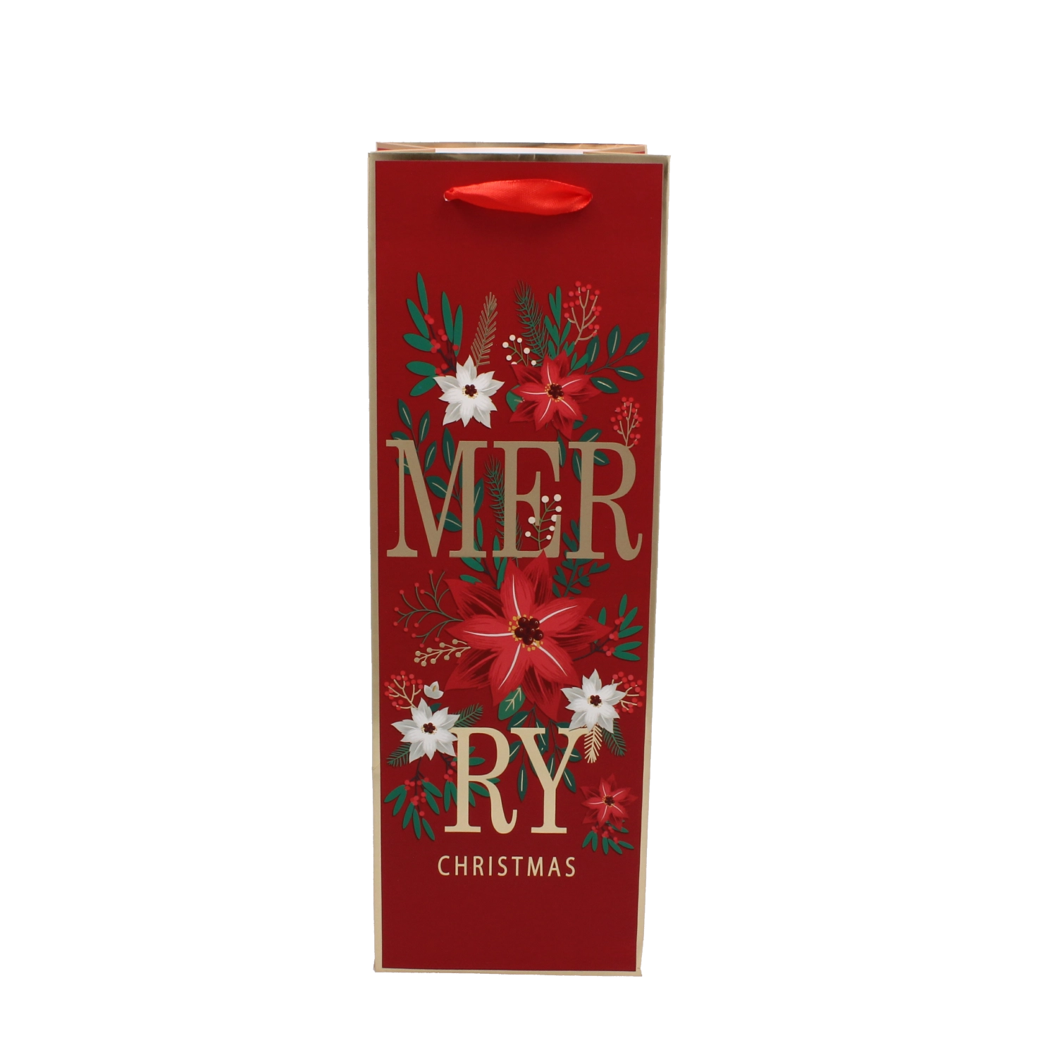 Darčekové tašky na víno Christmas to You potešia elegantným vzhľadom a pevnou konštrukciou. Sviatočné červené motívy s kvetmi, zlatými nápismi a decentnými detailmi podčiarknu atmosféru Vianoc. Rozmery 36 × 12 × 10 cm sú ideálne pre väčšinu fliaš vína, šumivých vín aj ďalších úzkych darčekov.