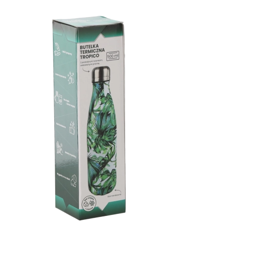 Dizajn s tropickými motívmi dodá každodennej hydratácii štýl, či už ste v kancelárii, v škole alebo na výlete. Fľaša je ekologická a znovupoužiteľná – znižuje spotrebu jednorazových plastov a pomáha chrániť životné prostredie.