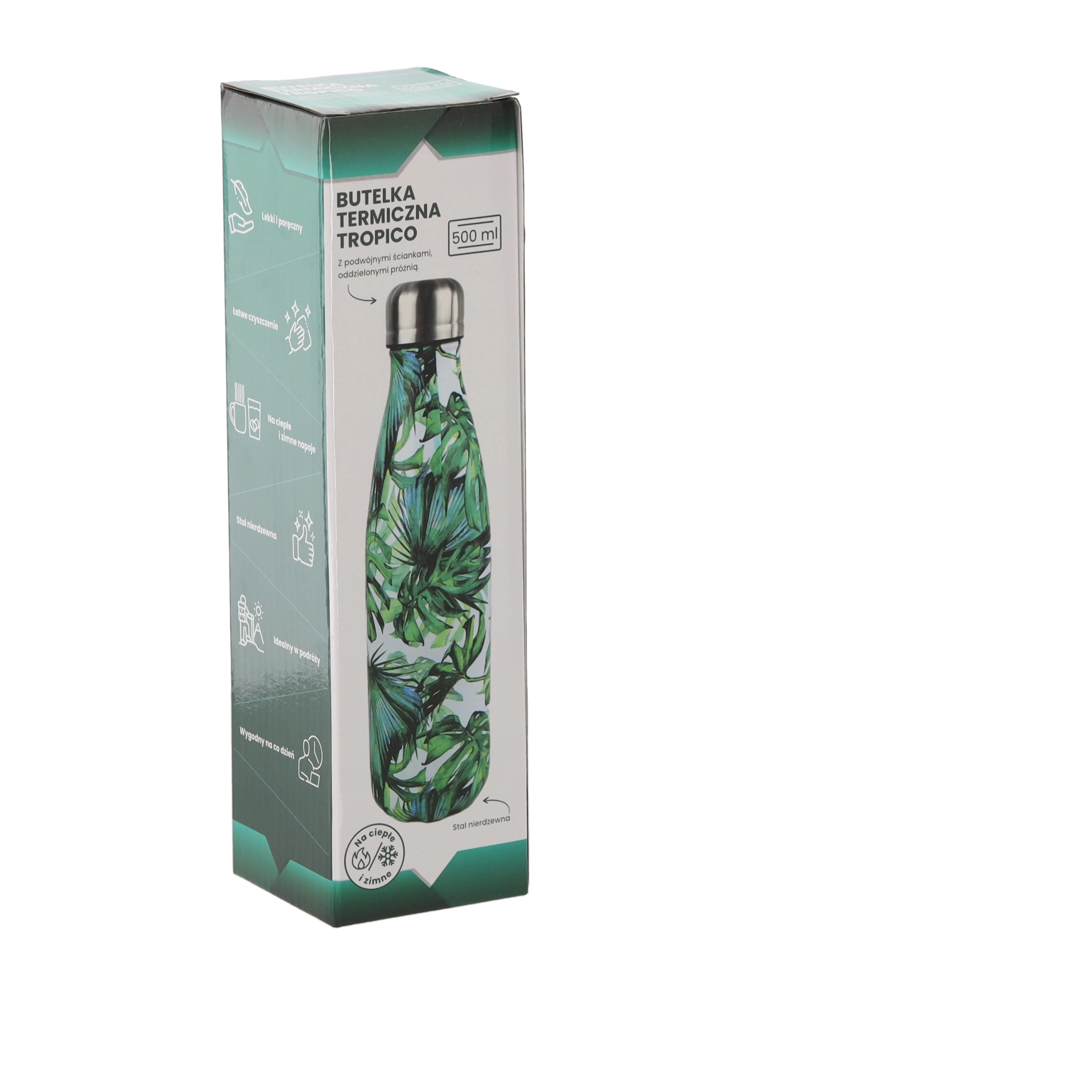Elegantná a praktická termo fľaša Tropico z nehrdzavejúcej ocele udrží horúce aj studené nápoje po dlhý čas. Vďaka dvojstennej vákuovej izolácii zostáva teplo vo vnútri a vonkajší povrch je príjemný na dotyk bez roseniu. Štíhly tvar sa zmestí do držiakov nápojov aj batohu a skrutkovacie viečko zabraňuje úniku tekutín.