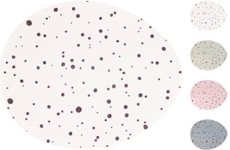 Štýlová podložka v tvare vajíčka s rozmermi 31 × 36 cm dodá vášmu stolu sviatočnú atmosféru a zároveň ho spoľahlivo ochráni pred poškriabaním a nečistotami. Vďaka ľahkej konštrukcii (15 g) sa ľahko prenáša aj skladuje a je dostupná v štyroch tlmených farbách, ktoré sa skvele kombinujú s rôznymi štýlmi stolovania.