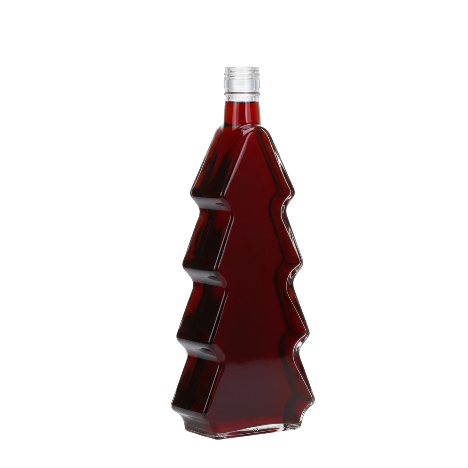 Elegantná sklenená fľaša s objemom 500 ml v tvare vianočného stromčeka je ideálna na domáce likéry, sirupy, džúsy aj ochutené oleje. Priehľadné sklo nechá vyniknúť farbám nápoja, zatiaľ čo zlatý kovový skrutkovací uzáver zaručí spoľahlivé tesnenie. Štýlový dizajn z nej robí praktický aj dekoratívny doplnok a skvelý vianočný darček.