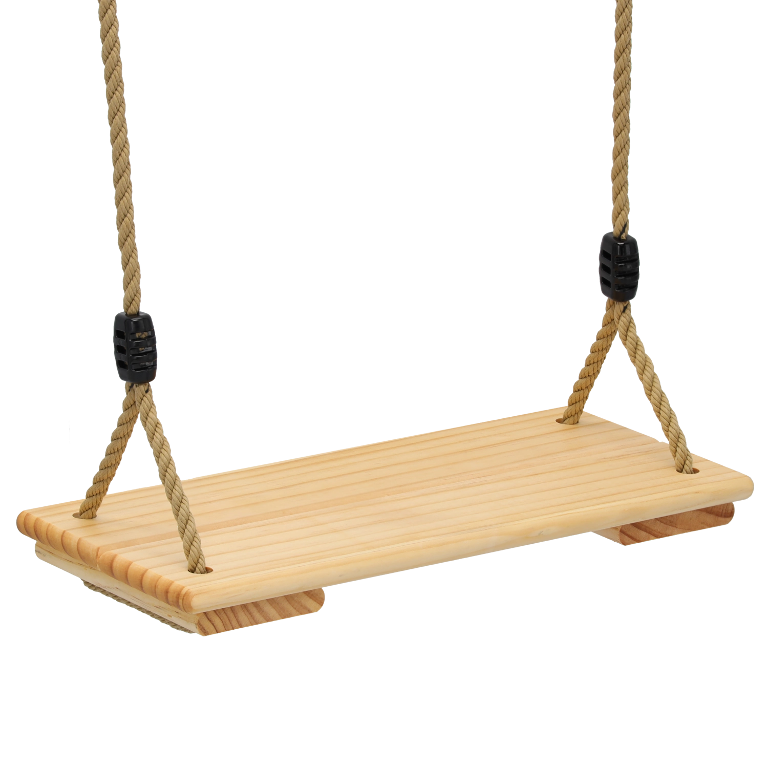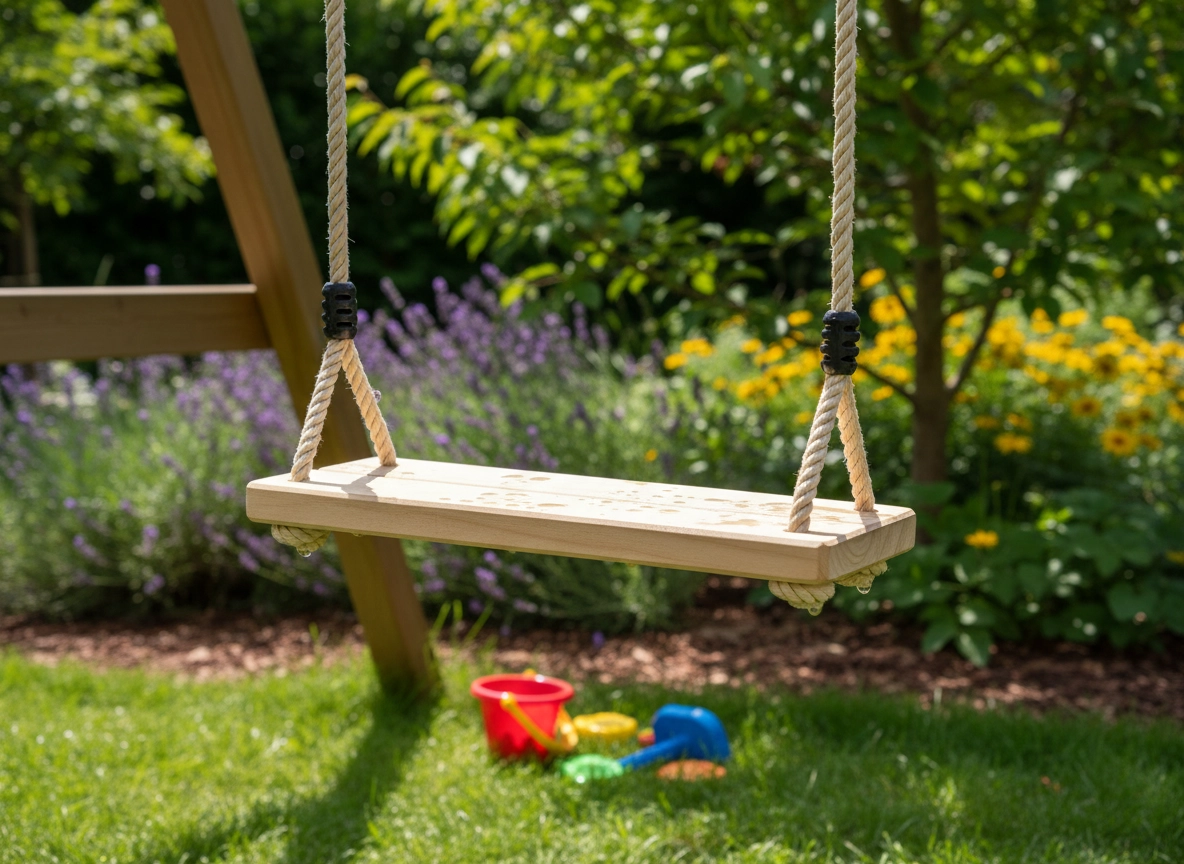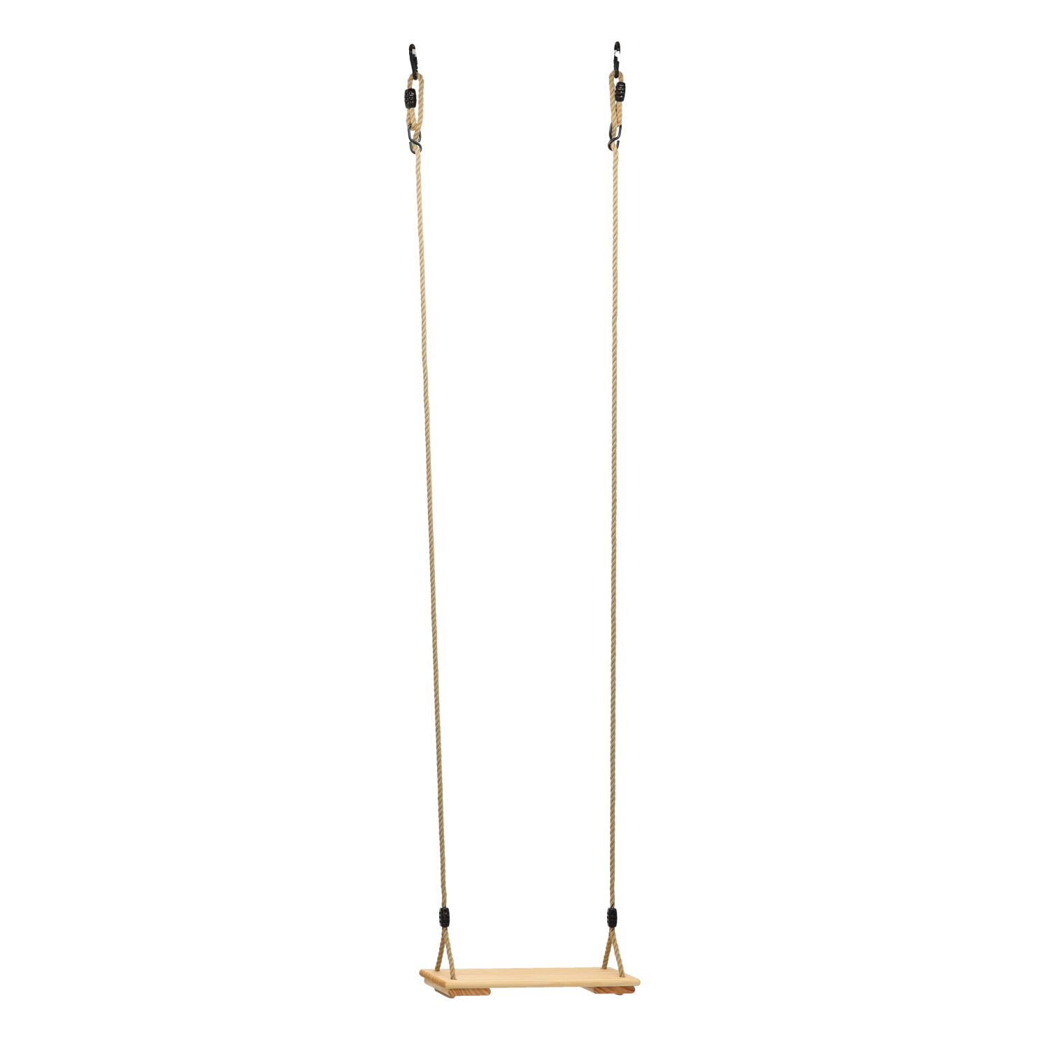 Robustné laná s bezpečnými úchytmi a dorazmi umožňujú ľahko prispôsobiť výšku hojdačky pre deti aj dospelých.