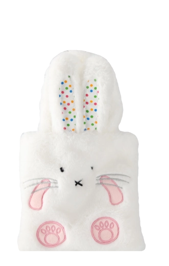 Biela plyšová varianta so zajačími uškami a jemnými výšivkami je mäkká, bezpečná a láka k pohladeniu.