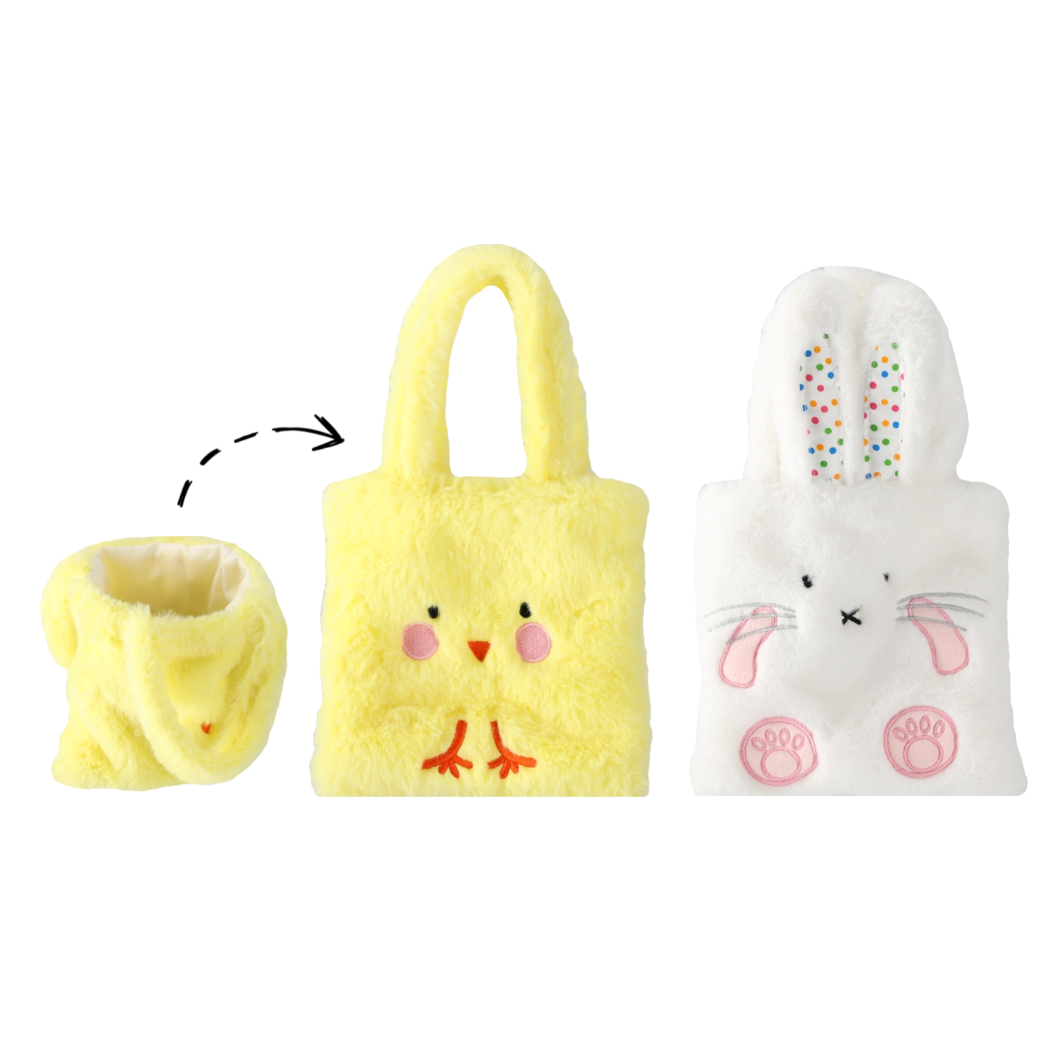 Táto štýlová veľkonočná taška v podobe roztomilého kuriatka alebo zajačika je vyrobená z mäkkého, hebkého materiálu, ktorý je príjemný na dotyk a pôsobí mimoriadne rozkošne. Vďaka kompaktným rozmerom 16 × 16 cm je ideálna na zbieranie vajíčok, obdarovanie detí drobnosťami alebo ako dekoratívny doplnok veľkonočného stola.