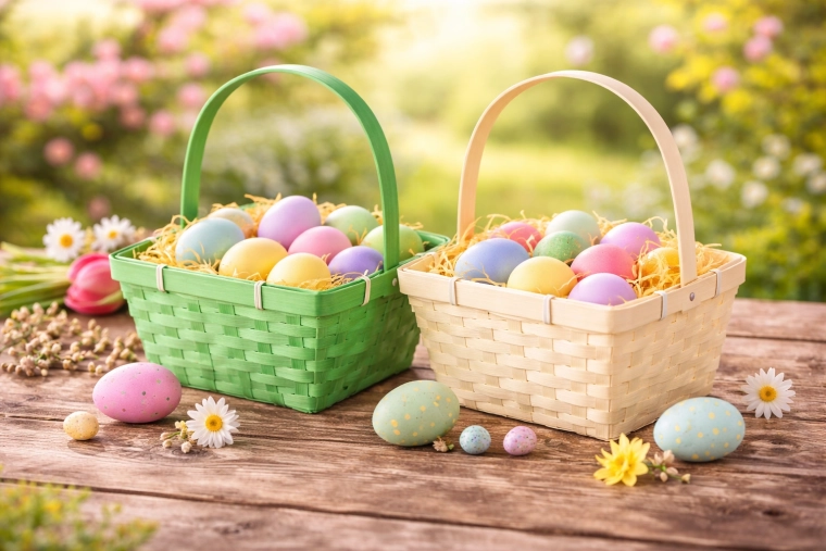 Košíky sú dodávané v mixe 2 farieb, ktoré spolu ladia a vytvárajú sviežu jarnú atmosféru. Ideálne na domácu výzdobu aj darčekové balenie.
