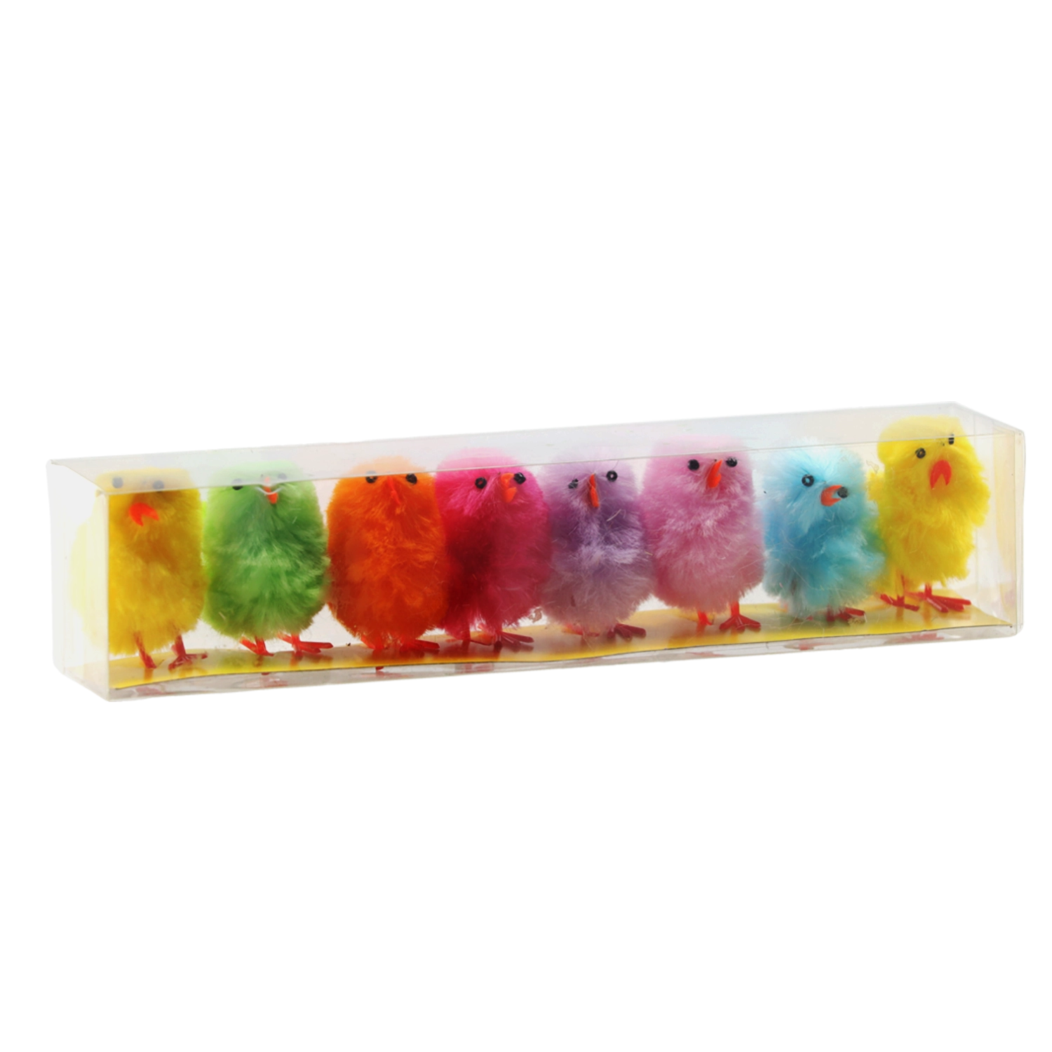Dodajte svojej veľkonočnej výzdobe hravú atmosféru so sadou ôsmich farebných kuriatok. Každý kúsok má jemne chlpatý povrch, drobný zobáčik a oranžové nožičky pre stabilné postavenie. Skvele sa hodia na stoly, police aj do jarných dekorácií.