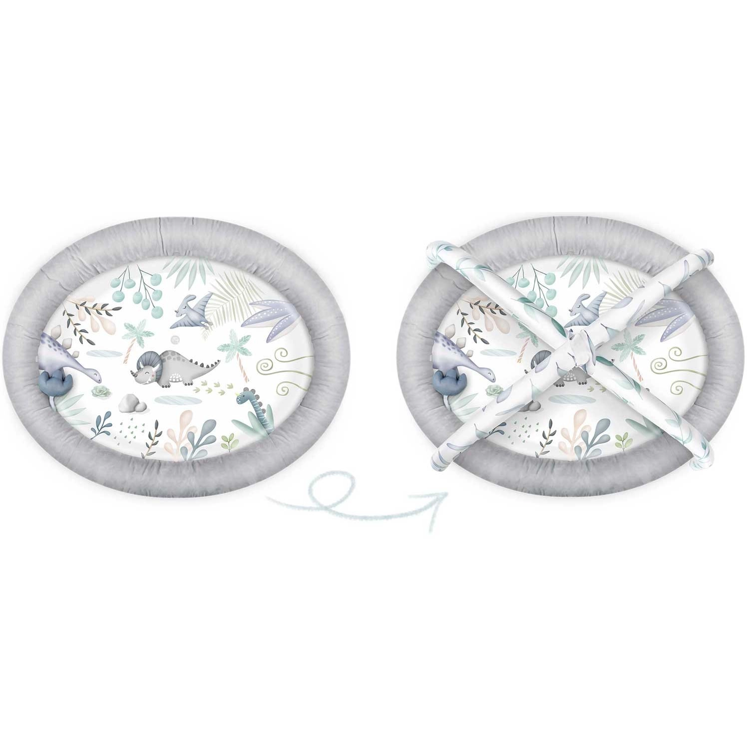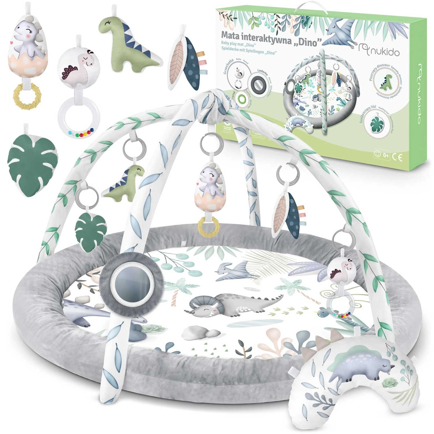 Elegantná a funkčná hracia deka Nukido Dino vytvára útulné a bezpečné hniezdočko na odpočinok aj objavovanie. Mäkké okraje a príjemné textílie zaisťujú komfort, zatiaľ čo decentné motívy dinosaurov a prírody podporujú pokojnú vizuálnu stimuláciu. Závesné hračky možno ľubovoľne premiestňovať, aby hra nikdy neomrzela, a zrkadielko pomáha rozvíjať sebauvedomenie a zrakové vnímanie.