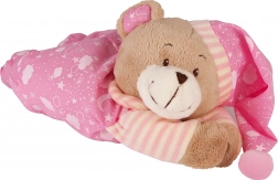 Tento rozkošný medvedík je skvelým spoločníkom na noc i deň. V ružovom pyžame je priateľ, ktorý vám nikdy neutečie, a je ideálnym darčekom pre našich najmenších. Medvedík nielenže rozvíja detskú predstavivosť, ale ponúka možnosť zavesenia, takže ho môžete ľahko pripevniť na detskú postieľku alebo kočík. Hrá upokojujúcu uspávanku „Dobrý večer, dobrú noc“, ktorá pomôže vášmu dieťaťu ľahko zaspať.