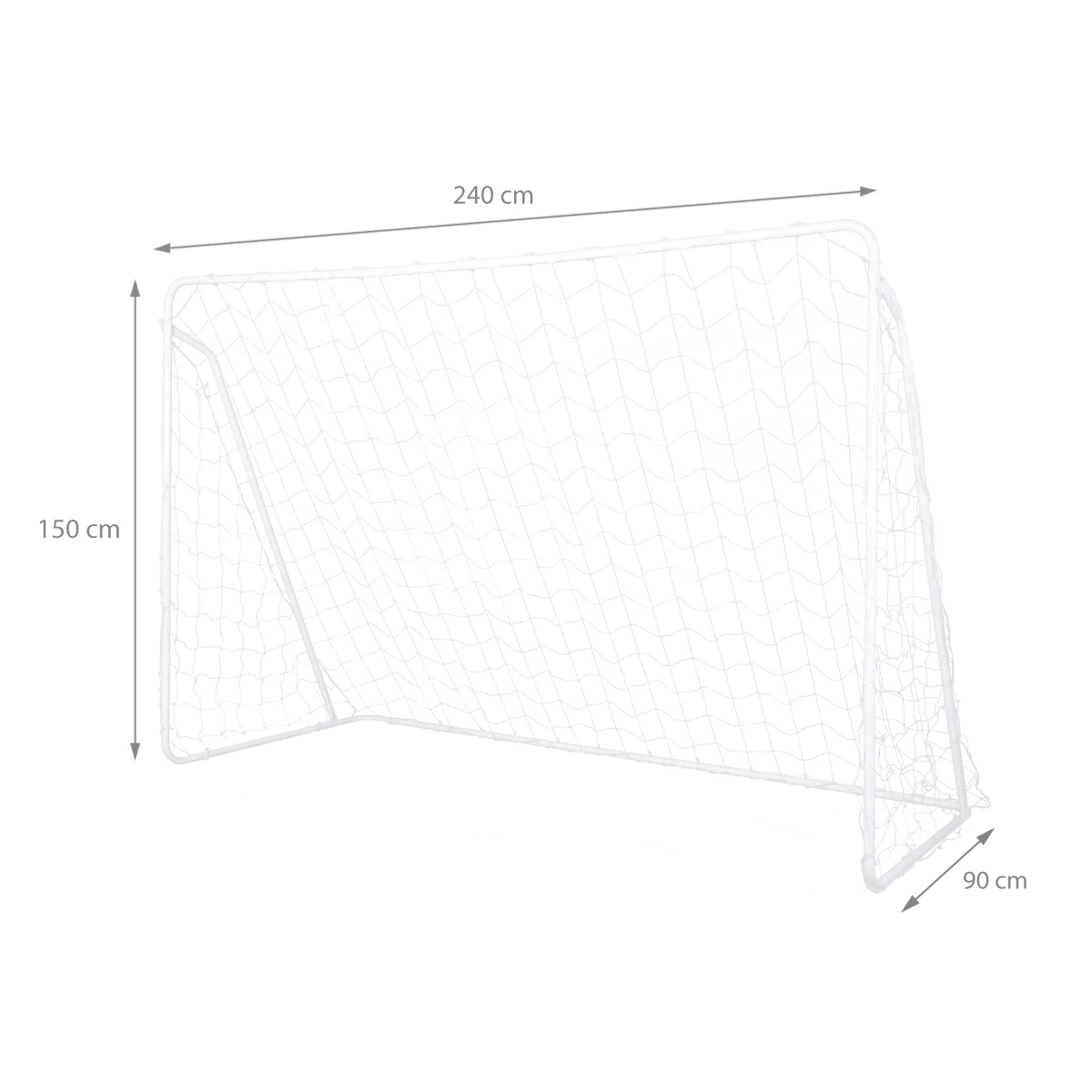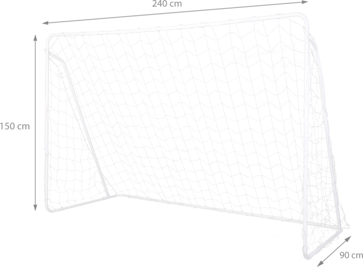 Rám z oceľových rúrok (Ø 25 mm) a PE sieť s okami 12 × 12 cm vydržia intenzívne používanie a spoľahlivo zachytia lopty.