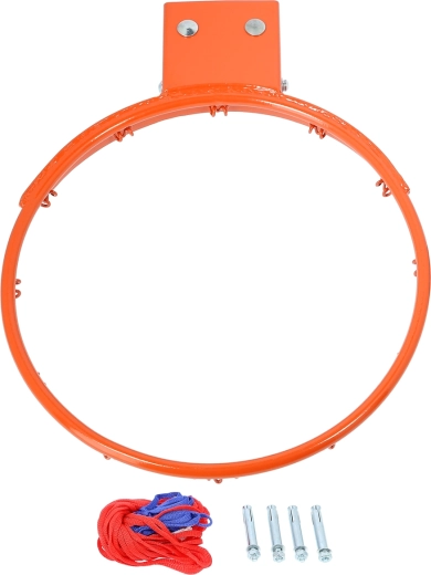 V balení nájdete obruč, farebnú sieťku a 4 kotvy do pevného muriva pre rýchlu a jednoduchú inštaláciu na stenu alebo dosku.