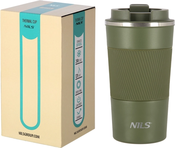 Štýlový cestovný termopohár NILS Camp s objemom 510 ml udrží vaše nápoje teplé až 12 hodín a studené až 24 hodín. Vďaka dvojitej nerezovej stene, flip viečku s tesnením proti rozliatiu a protišmykovému gumenému dnu je ideálny na cesty, do auta aj do práce.