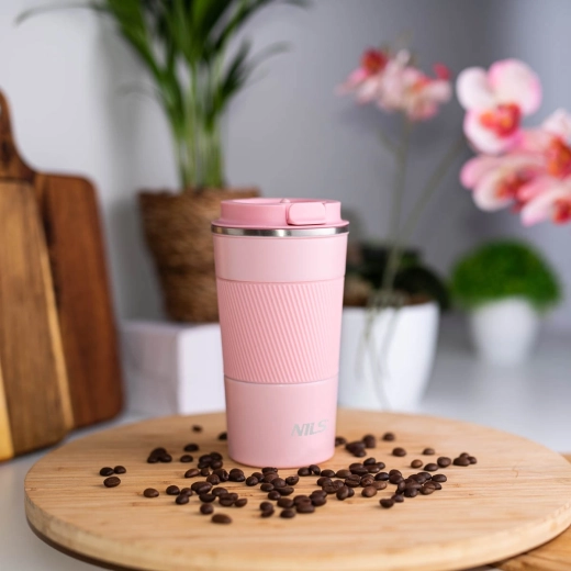 Obľúbený cestovný termohrnček v elegantnej ružovej farbe je vyrobený z nehrdzavejúcej ocele s dvojitou stenou, ktorá spoľahlivo drží teplotu. Vďaka šikovnému systému viečka stačí zospodu zatlačiť, viečko sa otvorí a vy si môžete vychutnať kávu či čaj bez zbytočného rozlievania. Silikónové tesnenie vo viečku navyše minimalizuje únik tekutín pri zatvorenom hrnčeku.