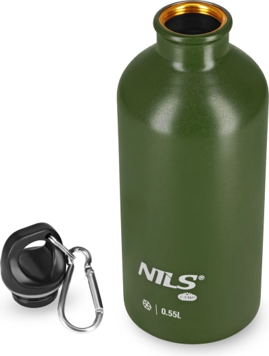 Ľahká a odolná nerezová fľaša NILS CAMP s objemom 500 ml na každodennú hydratáciu aj outdoor. Vďaka dvojitej izolačnej stene udrží nápoj chladný až 24 hodín, má 100 % tesniaci skrutkovací uzáver a praktickú karabínu na pripnutie na batoh či opasok.