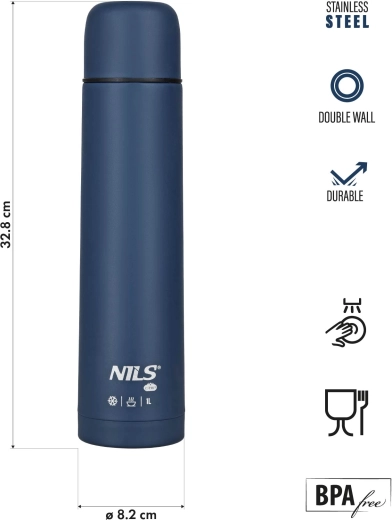 Termoska NILS Camp s objemom 1000 ml je spoľahlivý parťák do hôr, do mesta aj do kancelárie. Kvalitná nehrdzavejúca oceľ s dvojitou izolačnou stenou efektívne udržiava teplotu nápoja – v zime hrejivá káva či čaj, v lete osviežujúca voda. Konštrukcia je bez BPA, neovplyvňuje chuť nápoja a je odolná proti poškodeniu a korózii.