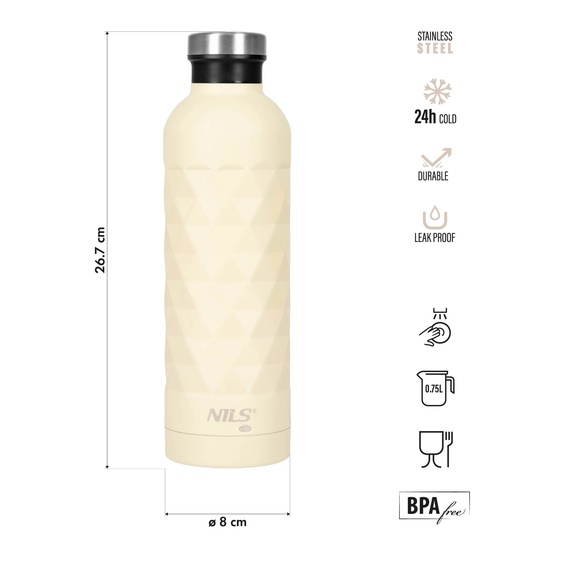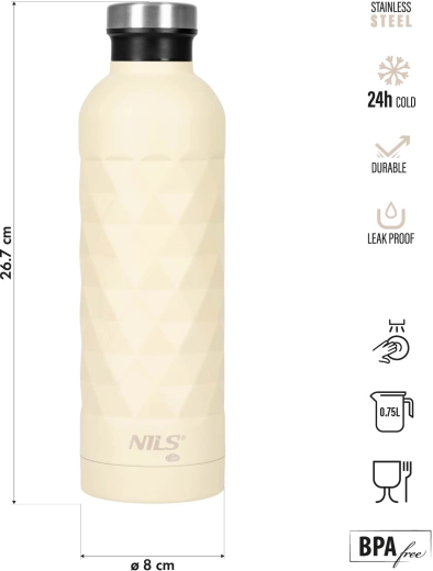Termofľaša NILS Camp v béžovej farbe je spoľahlivý parťák pre aktívny deň. Kombinuje moderný dizajn, odolnú konštrukciu z nehrdzavejúcej ocele a praktické rozmery, ktoré sa zmestia do batohu aj do držiaka na fľašu. Textúrovaný povrch zaisťuje istý úchop a fľaša vďaka izolácii nekondenzuje – zostáva suchá na dotyk.