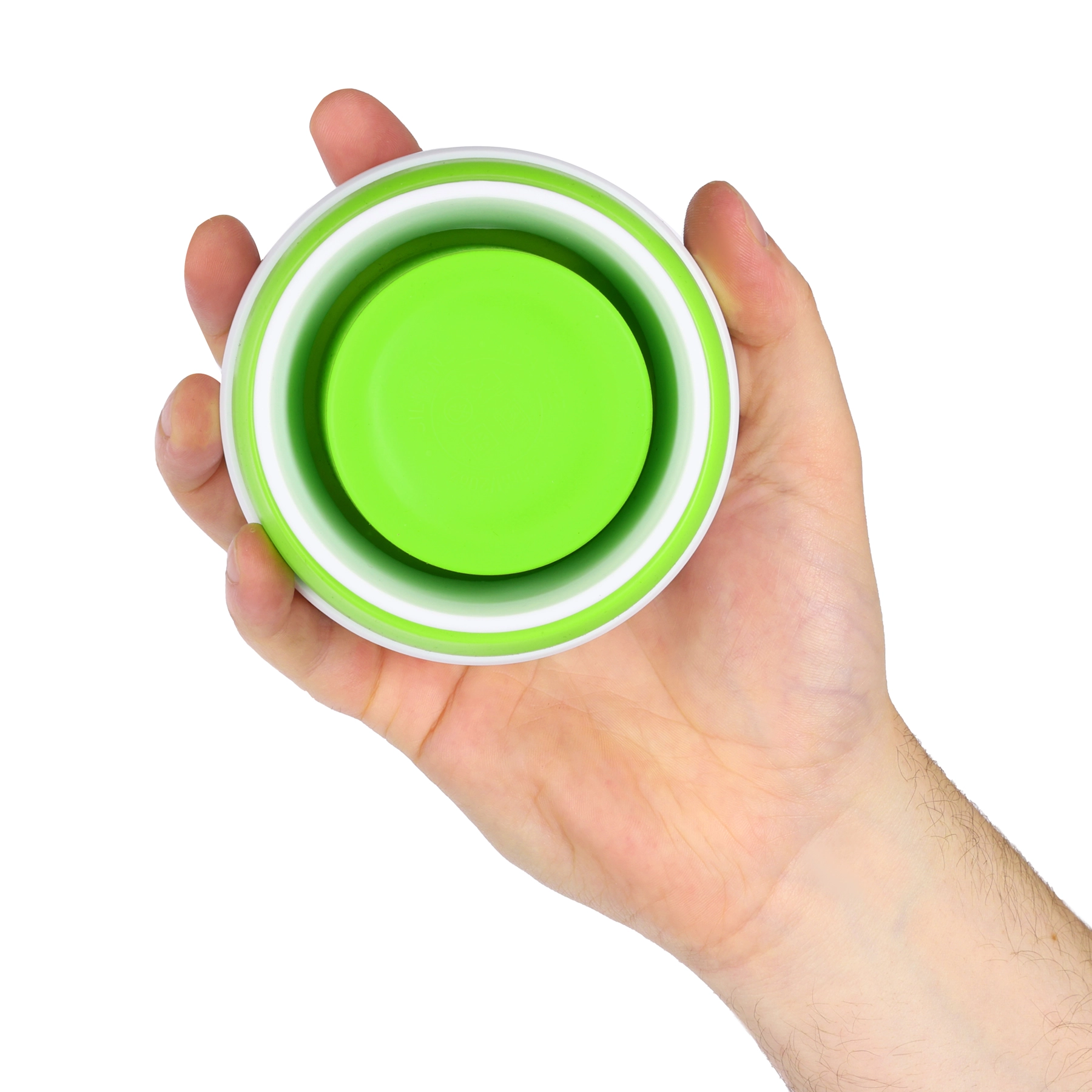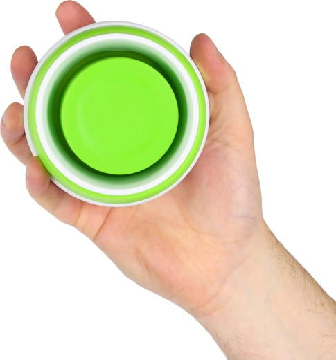 Hrnček zložíte behom chvíľky na výšku cca 6,5–7 cm. Ľahko sa zmestí do batohu, kabelky aj vrecka a šetrí miesto na cestách.