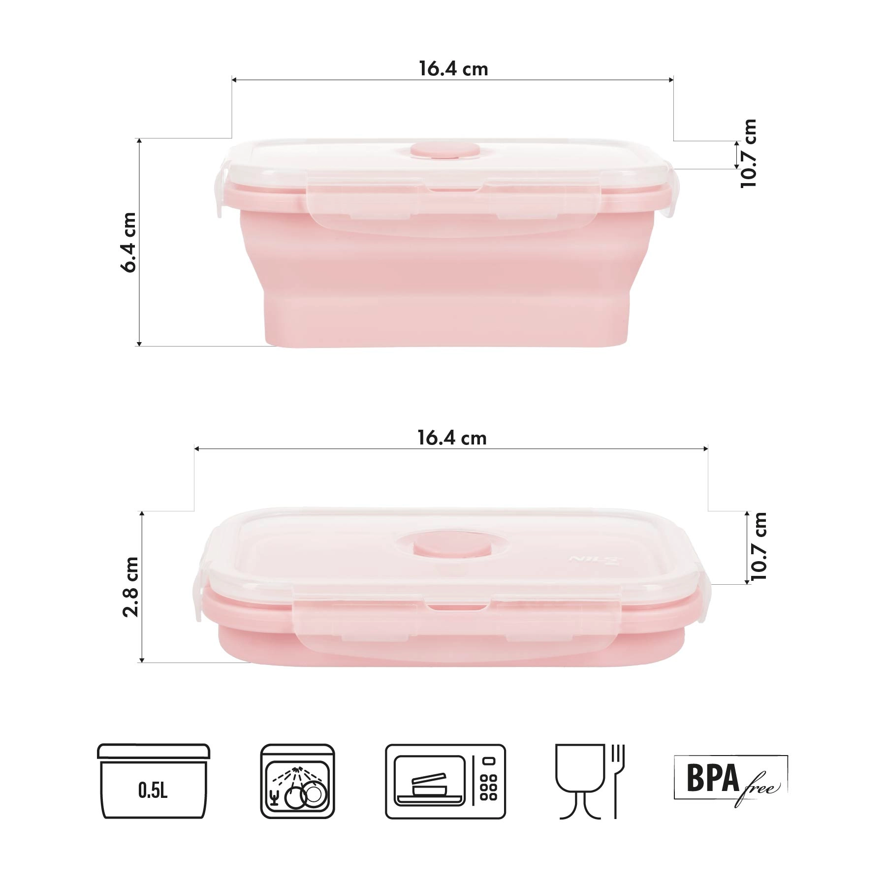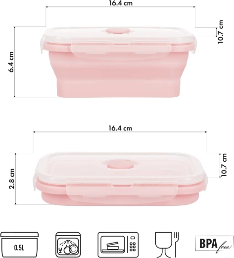 Skladací desiatový box NILS Camp je ideálny na obedy, väčšie desiaty aj porcie ovocia či šalátu. Po rozložení ponúkne 500 ml priestoru, po zložení má výšku len 2,8 cm, takže sa ľahko zmestí do kabelky či ruksaku. Vďaka pevnému viečku s klipmi a ventilom je vhodný aj na tekutejšie jedlá, ako sú omáčky či jogurty.