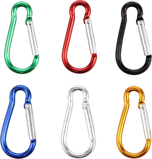 Praktická súprava 6 ľahkých karabín z anodizovaného hliníka na každodenné používanie vonku aj v meste. Vďaka pevnej a odolnej eloxovanej úprave odolajú korózii, rýchly pružinový zámok uľahčí pripnutie a odopnutie a kompaktné rozmery sú ideálne na kľúče, batoh, táborenie či organizáciu drobnej výbavy. Nosnosť 5 kg – pre ľahšie predmety.