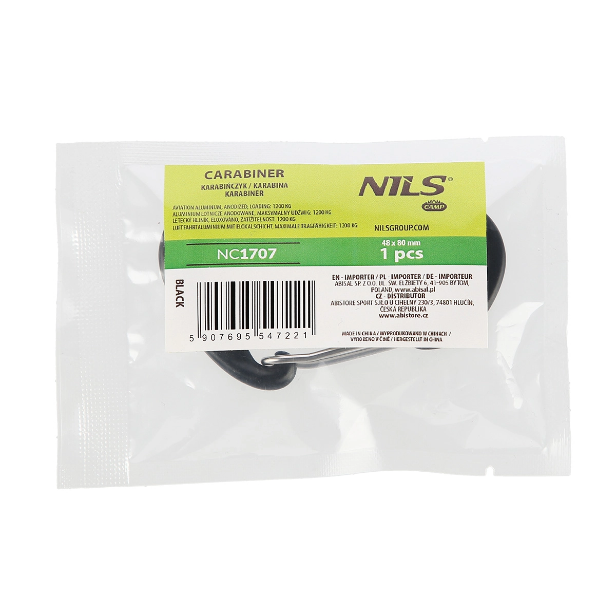Anodizovaný hliník zaručuje nízku hmotnosť 23 g a vysokú pevnosť so zaťažením až 12 kN (1 200 kg).