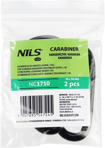 Praktická sada 2 hliníkových karabín NILS Camp na každodenné použitie v prírode aj v meste. Odolná anodizovaná povrchová úprava chráni proti korózii, pružinový zámok zabezpečuje rýchle pripnutie a každá karabína unesie až 3 kg – ideálne na kľúče, fľaše, príslušenstvo na batoh či organizáciu vybavenia v stane.