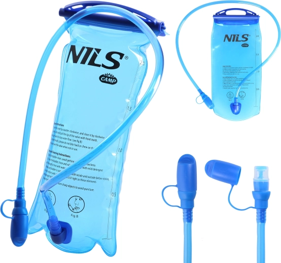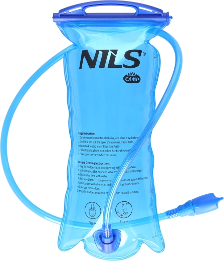 Praktický hydrovak NILS CAMP s objemom 2 l zaistí rýchlu a hygienickú hydratáciu bez zastavovania pri jazde na bicykli aj horskej turistike. Vďaka širokému hornému plneniu s poistným klipom sa ľahko čistí a nepretečie. 105 cm dlhá hadička so silikónovým náustkom s krytkou umožňuje pohodlné hands‑free pitie. Ekologický materiál PEVA je ľahký, odolný a šetrný k prírode.