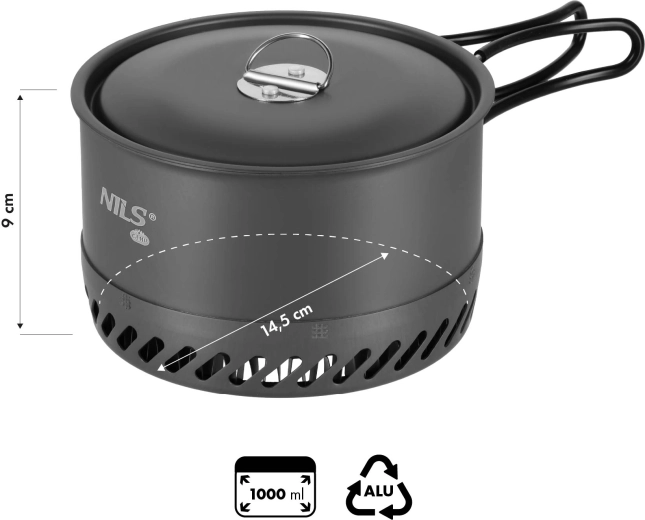 Uvarte vodu aj jednoduché jedlá rýchlo a efektívne. Hrniec z eloxovaného hliníka sa rýchlo zohrieva, je ľahký a pritom odolný voči poškodeniu. Integrovaný výmenník na dne zväčšuje styčnú plochu s plameňom, zlepšuje rovnomerný rozvod tepla a pomáha šetriť palivo.