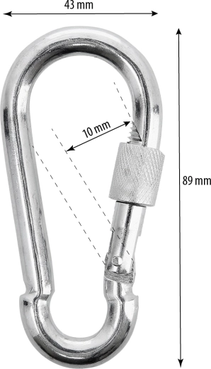Vďaka rozmerom 8,9 × 4,3 cm a prievlaku 10 mm je ideálna na všestranné použitie – od zavesenia výstroja, upevnenia lán a retiazok až po organizáciu náradia. Odolná povrchová úprava chráni proti korózii a opotrebovaniu.