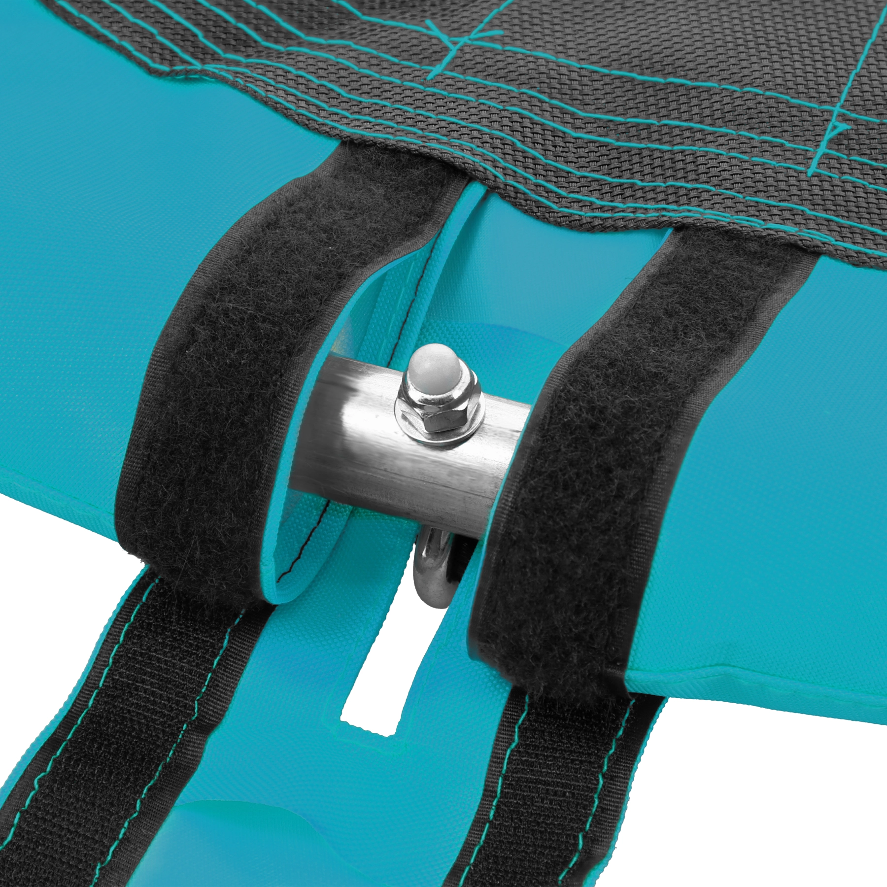 Mäkký tyrkysový lem a pevná sieťovaná sedacia plocha NILS zvyšujú komfort, odolnosť a bezpečnosť pri každom zhupnutí.