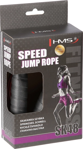 HMS SK48 je rýchlostné švihadlo navrhnuté na efektívne spaľovanie kalórií, zlepšenie kondície a koordinácie. Vďaka oceľovému lanku s ochranným povlakom a guľôčkovým ložiskám v rotačných hlaviciach dosiahnete plynulé a veľmi rýchle preskoky bez krútenia či zadrhávania.