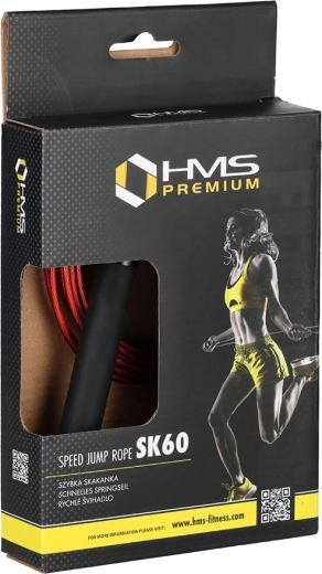 HMS SK60 je rýchlostné švihadlo navrhnuté na efektívne spaľovanie kalórií, zlepšenie kondície aj techniky. Guľôčkové ložiská v hlaviciach sa starajú o mimoriadne hladkú a rýchlu rotáciu, ktorá minimalizuje krútenie a zamotávanie lanka. Oceľové lanko potiahnuté bužírkou je odolné voči opotrebovaniu a vhodné na intenzívne tréningy.
