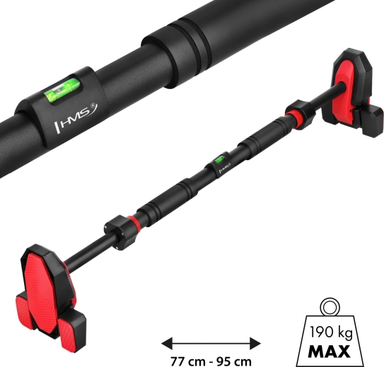Montáž prebieha úplne bez vŕtania – nastavíte dĺžku 77–95 cm, dotiahnete zámok a vďaka integrovanej vodováhe ľahko vyrovnáte do ideálnej polohy. Mäkké penové rukoväte sú príjemné na dotyk a nešmýkajú sa ani pri dlhších tréningoch. Hrazda je vhodná na zhyby nadhmatom aj podhmatom, visy, austrálske príťahy či cviky na brucho.
