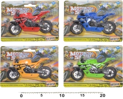 Malá, ale rýchla! Táto závodná motorka s dĺžkou 11 cm poteší každého milovníka rýchlosti. Vďaka voľnobežným kolesám jazdí po podlahe ľahko a plynulo a je ideálna na detské preteky aj do domácej zbierky. K dispozícii v 4 veselých farbách – modrá, zelená, červená a žltá.
