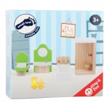 Doprajte deťom realistickú kúpeľňu do ich domčeka pre bábiky. Táto 4-dielna sada v moderných farbách kombinuje masívne drevo a odolné prvky na každodenné hranie. Veľkosťou pasuje k ohybným bábikám do 12 cm a skvelo zapadne do väčšiny domčekov.