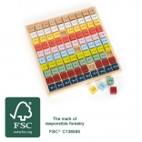 Učenie prebieha hravou formou – deti berú do ruky jednotlivé dieliky s príkladmi, hľadajú správne riešenia a vracajú ich do mriežky. Vďaka prehľadnému farebnému kódovaniu a praktickému drevenému rámiku je všetko pekne usporiadané.