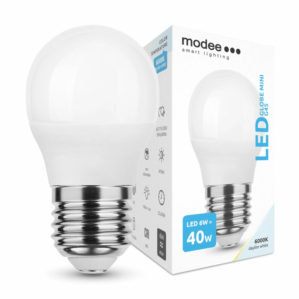 LED žiarovka Globe Mini G45 spája úspornú prevádzku so silným a rovnomerným svetlom. Vďaka kompaktným rozmerom sa zmestí do menších tienidiel a dekoratívnych svietidiel, pričom poskytne jasné studené biele svetlo vhodné na prácu, do kuchýň, chodieb aj technických miestností.