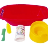 Dostupná je v dvoch farebných variantoch, takže si deti môžu vybrať podľa svojich preferencií. Rozmery plastovej vaničky sú 40 x 9,5 cm, ideálne pre bábiky rôznych veľkostí. Je to skvelý darček pre každú malú slečnu, ktorá sa rada hrá na mamičku.