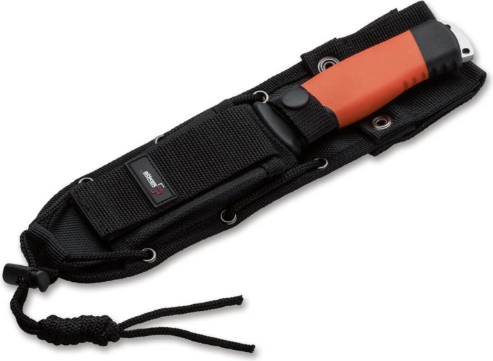 Pogumovaná rukoväť perfektne sedí v ruke a vďaka protišmykovému povrchu minimalizuje riziko vykĺznutia aj v mokrých podmienkach. Výrazná oranžová farba zvyšuje viditeľnosť noža v tráve či lístí. Súčasťou balenia je praktické nylonové puzdro na bezpečné nosenie.