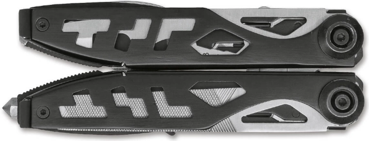 - Čiastočne zúbkovaná čepeľ, pílka na drevo, pilník s pravítkom, multifunkčný nástroj (otvárač na konzervy, otvárač na fľaše, ohýbač/odizolovač drôtu, imbusový kľúč), rezačka pásu