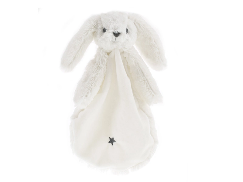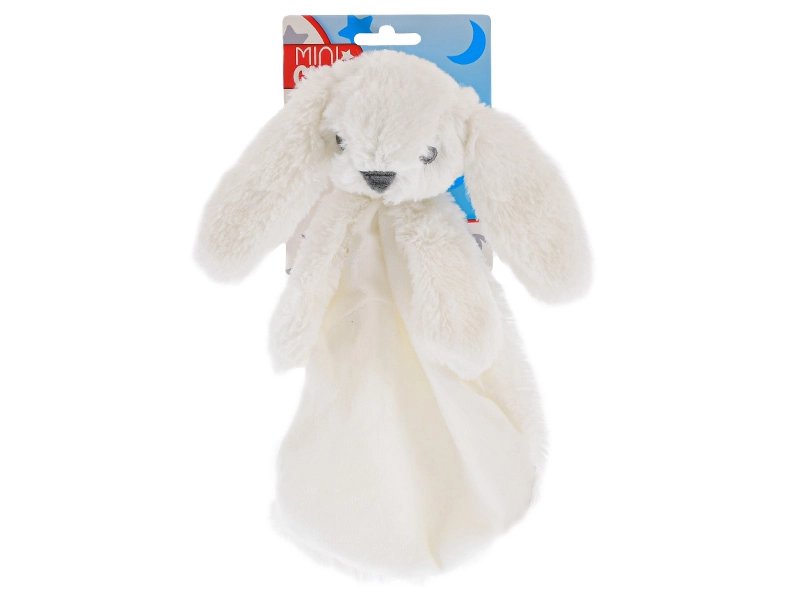 Usínáčik zajačik v bielej farbe kombinuje mäkkú plyšovú hlavičku s ľahkou textilnou dečkou, ktorá sa ľahko drží aj tými najmenšími ručičkami. Hebký povrch upokojuje, pomáha navodiť pocit bezpečia a podporuje pokojné zaspávanie.